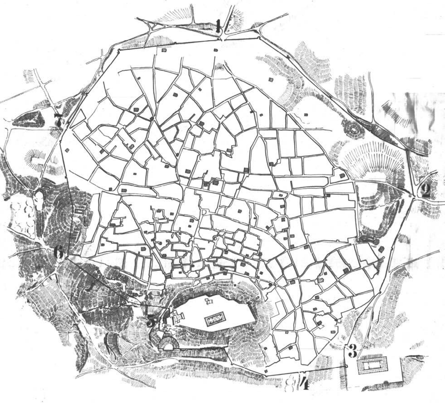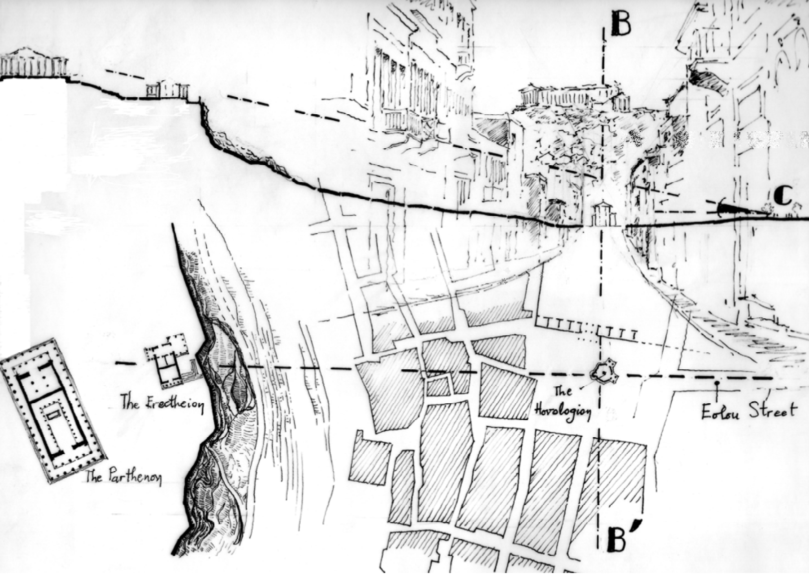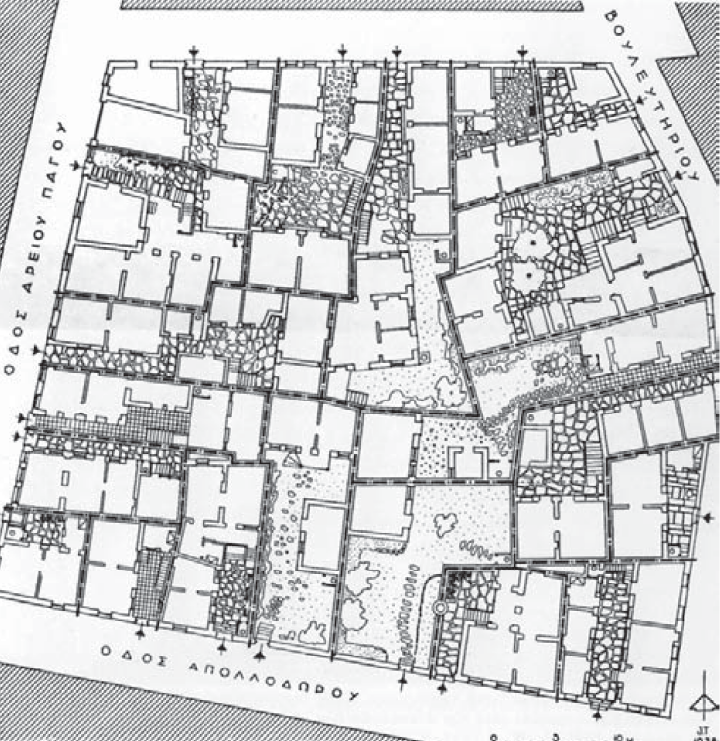 卫城北部的十九世纪民居首层平面,拆除于1938年