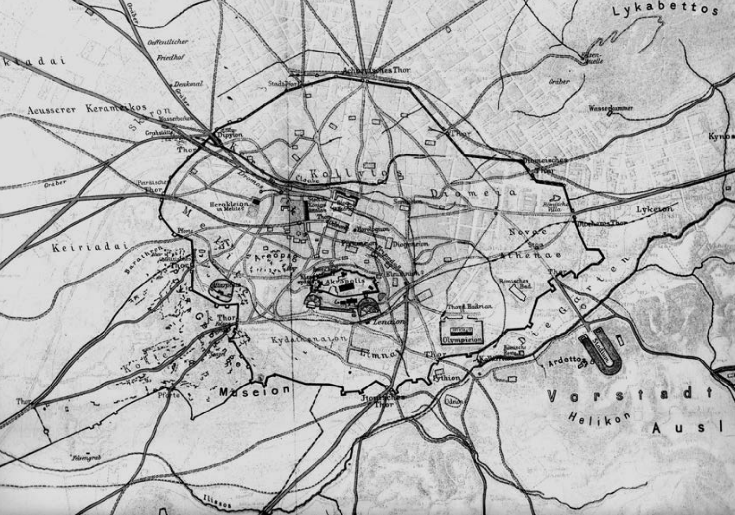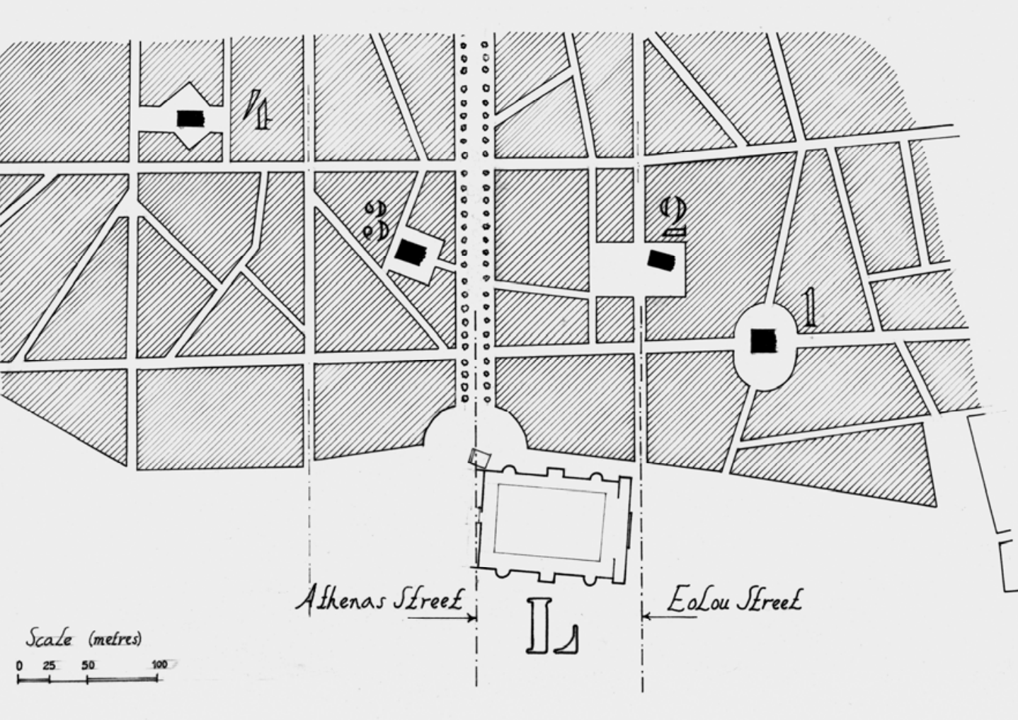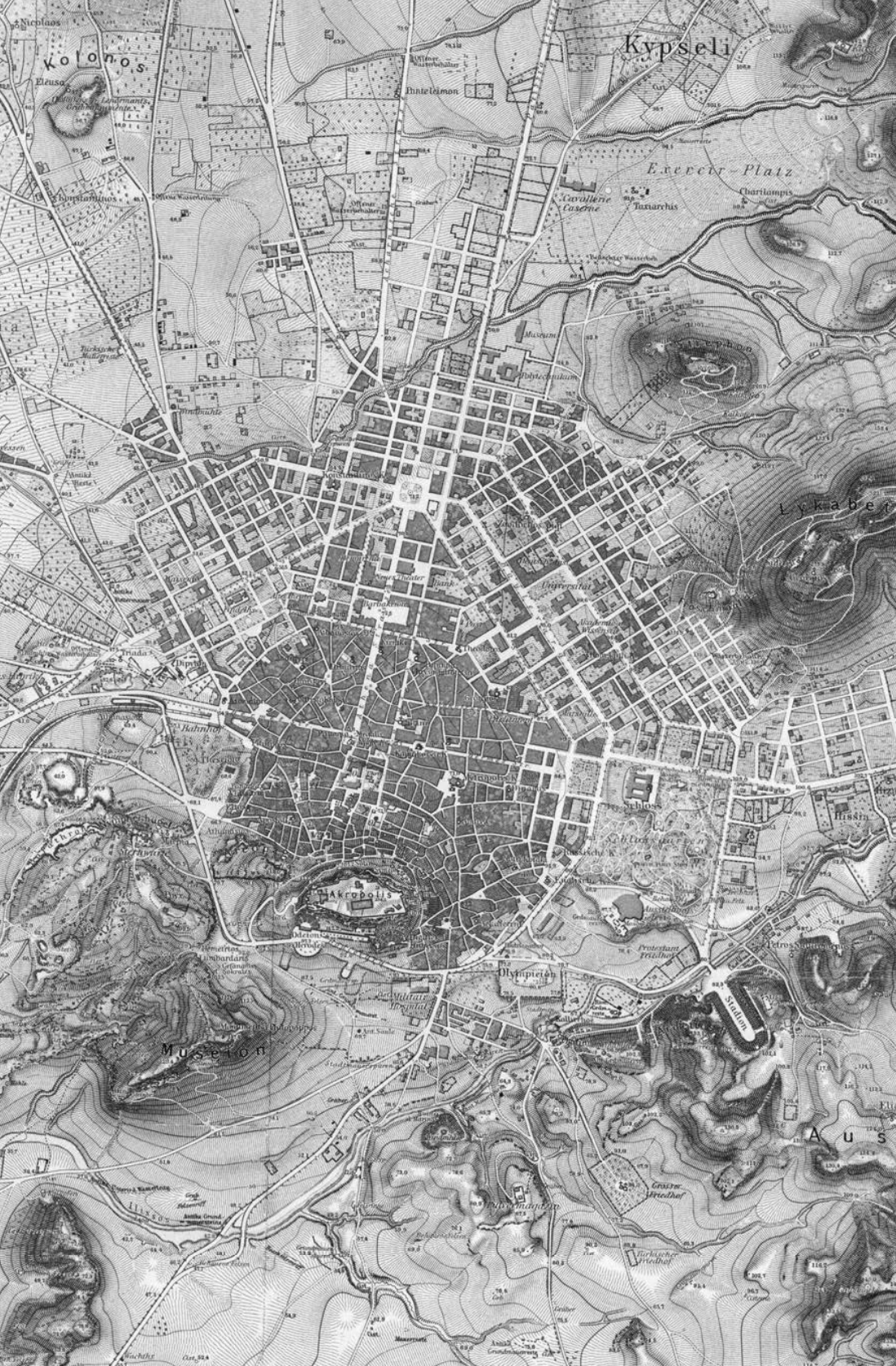 1875年雅典测绘,城市在东西和南北方向的肌理呈现出发展上的差异