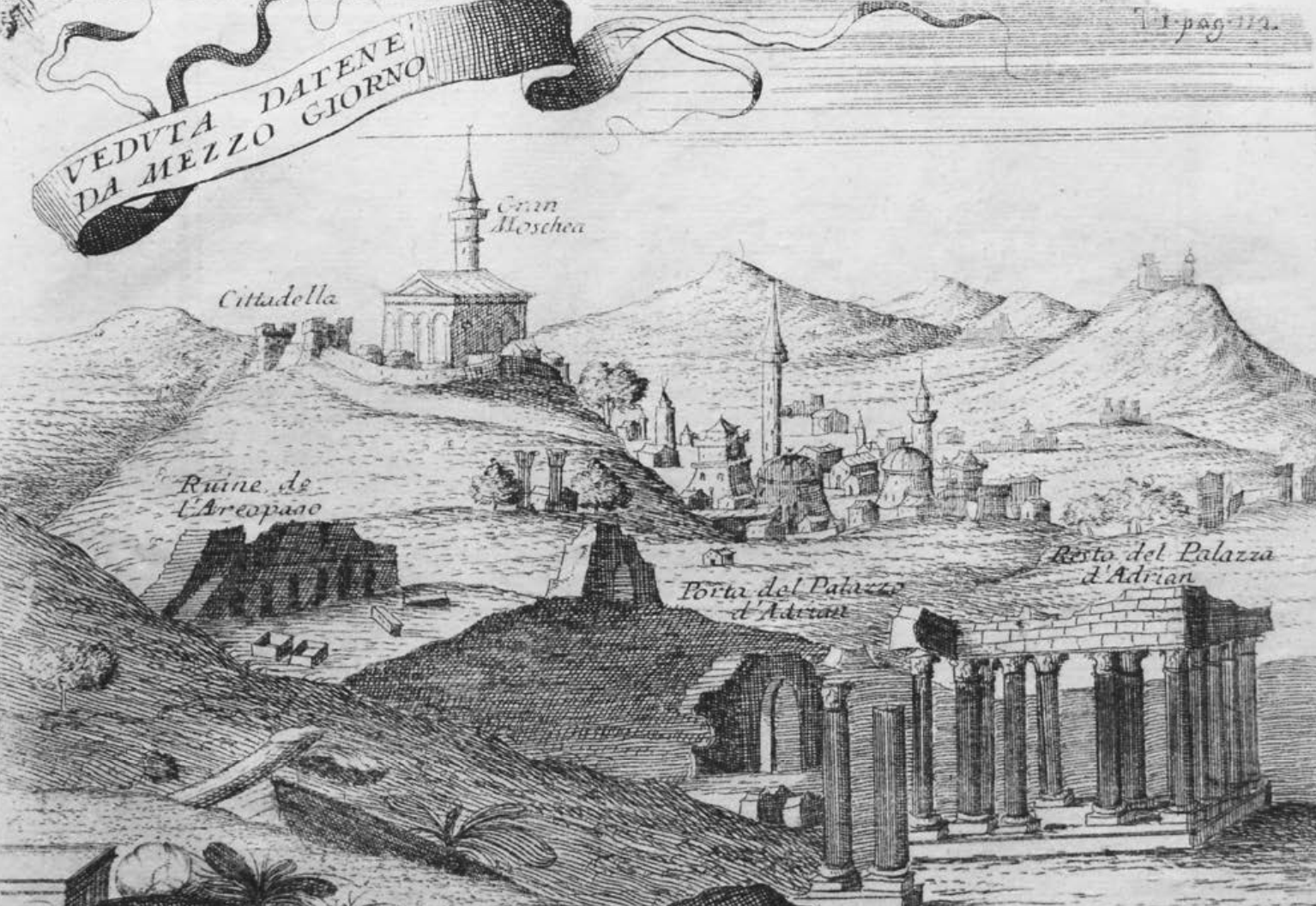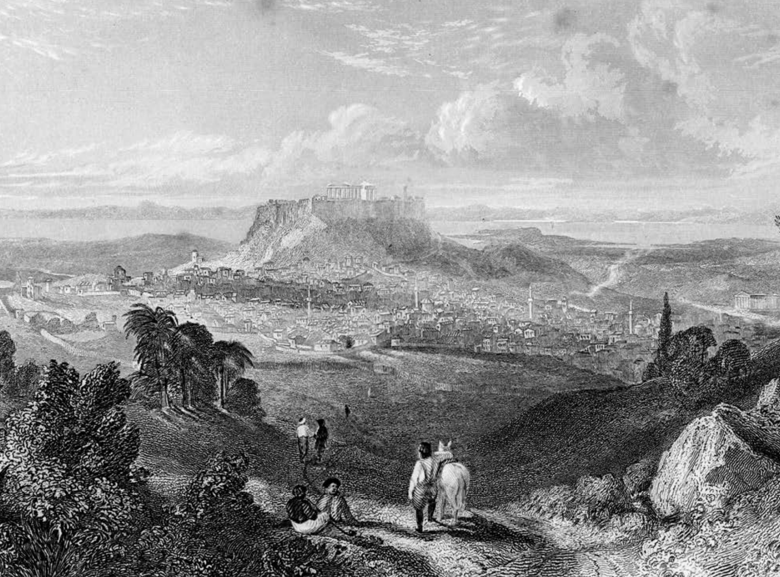 一副描绘十八世纪奥斯曼时期雅典的画作,显示出卫城,以及有宣礼塔的城市聚落