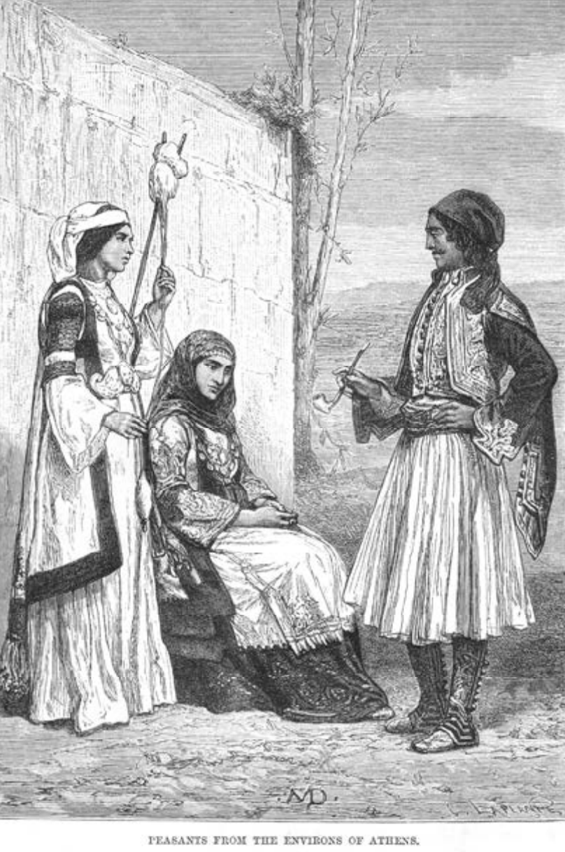 十九世纪早期描绘雅典附近农民的画面,看上去穿着并不贫穷