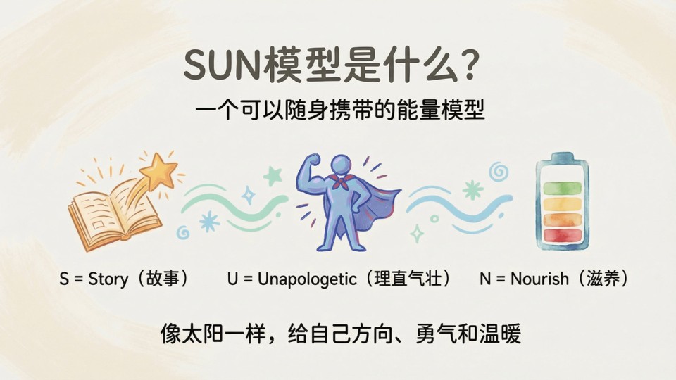在马年的第一天,我想送给所有听友一个可以随身携带的能量模型——SUN模型。这不是三个分散的祝愿,而是一个完整的自我成长框架:Story(写下自己的故事)、Unapologetic(理直气壮地做自己)、Nourish(高质量地滋养自己)。希望它能像太阳一样,在新的一年里持续照亮我们,给我们方向、勇气和温暖。