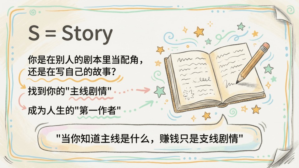 •对抗内耗:当你知道主线是"成为疗愈者"时,就不会因为"没赚到几百万"而自责