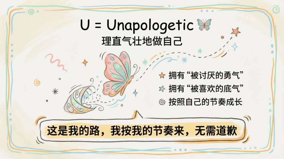 •U = Unapologetic:理直气壮地做自己(无需道歉)