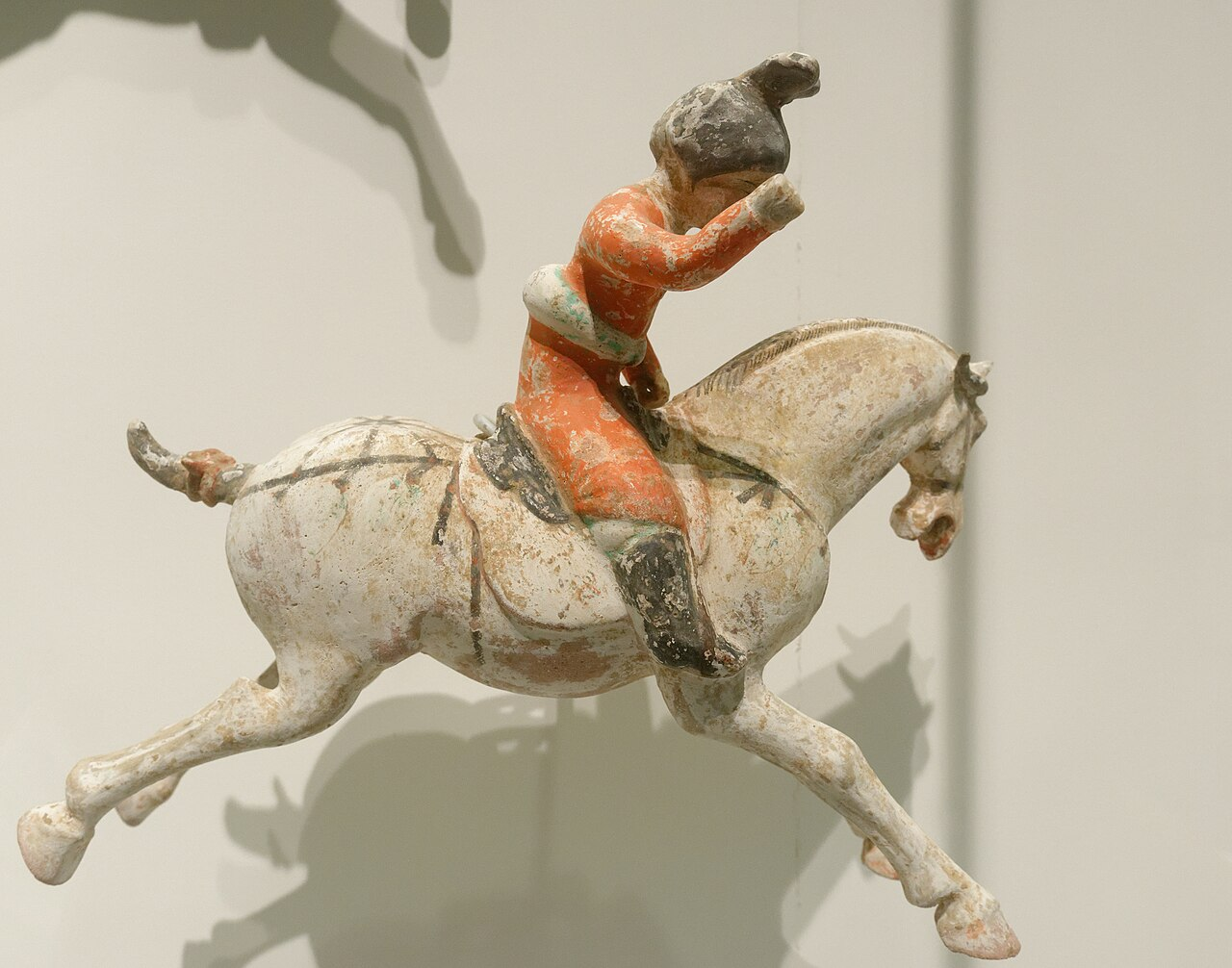 打马球女性陶俑: