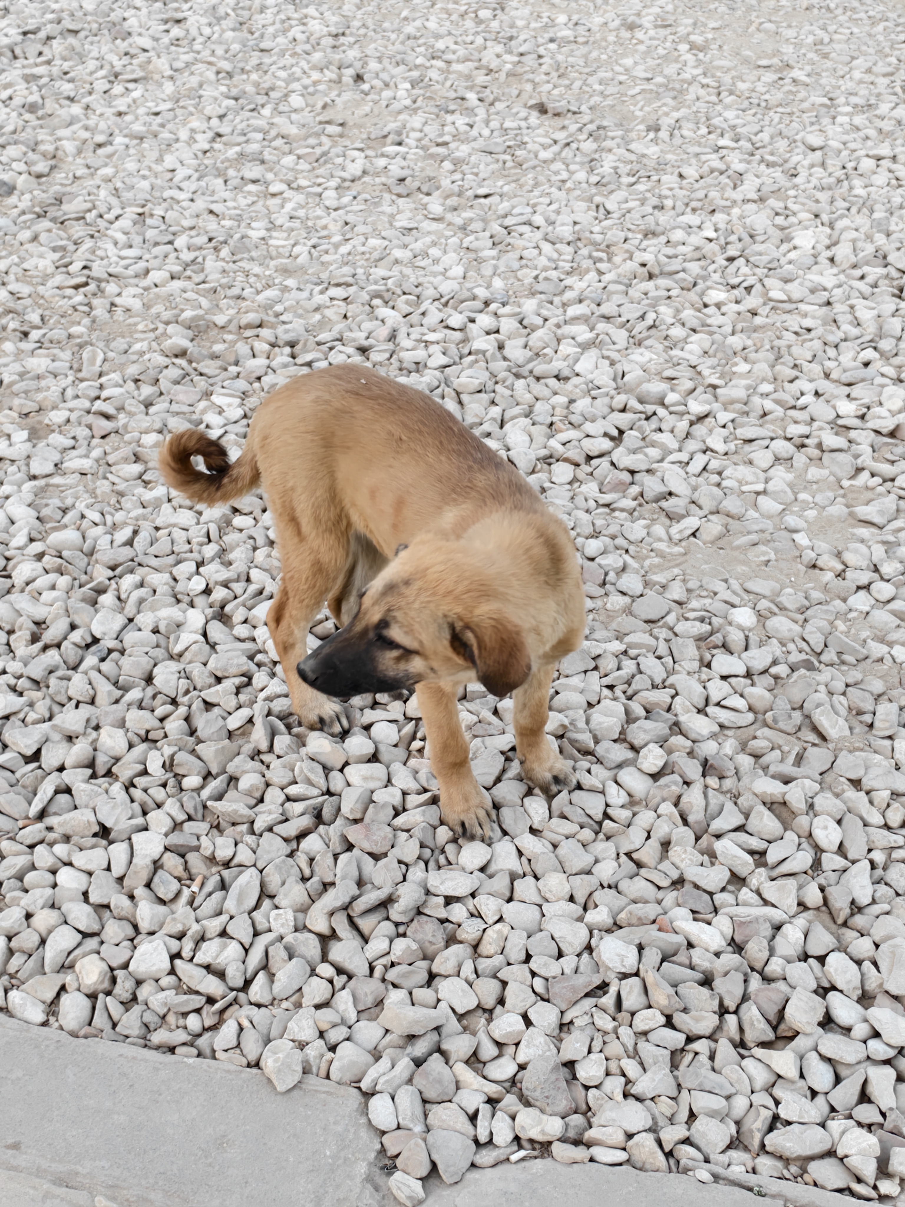 金字塔旁边路上的埃及黄狗