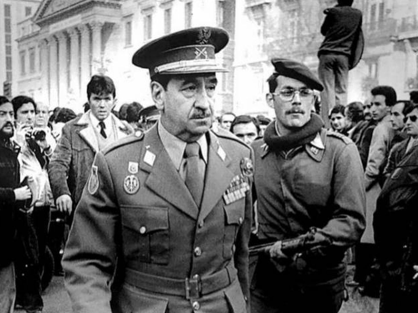 卸任首相阿道弗·苏亚雷斯(左一)和古铁雷斯·梅利亚多将军是少数敢于直接对抗政变士兵的政治家。