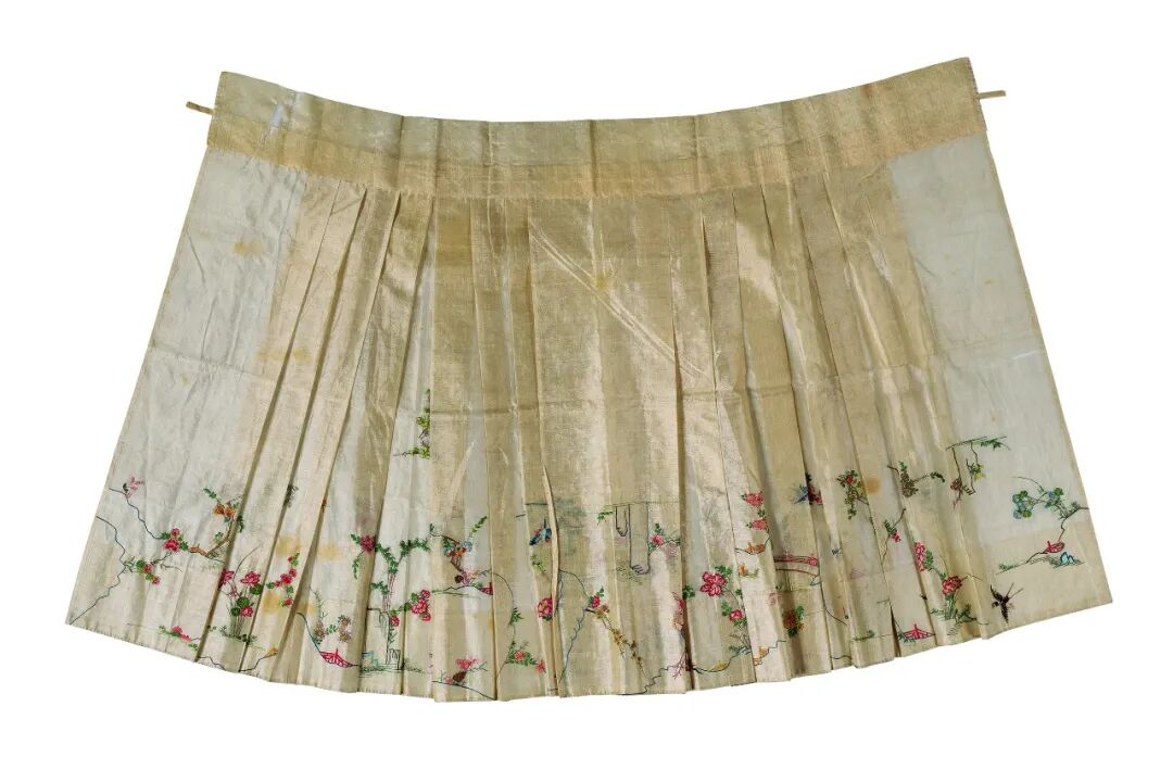 白色暗花纱绣花鸟纹马面裙,明,长88厘米 腰宽60厘米,山东博物馆藏