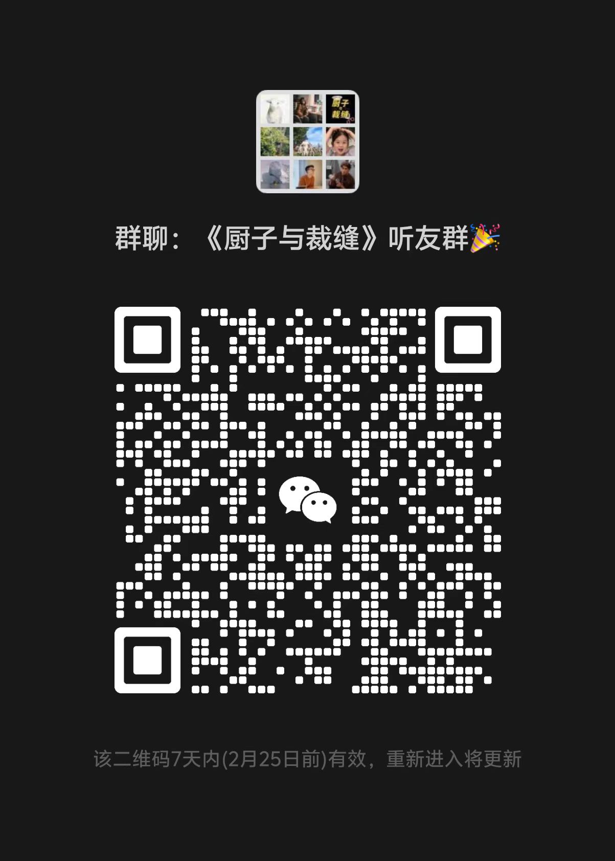 欢迎加入《厨子与裁缝》,二维码失效后可添加小助手微信:Oncehuang777