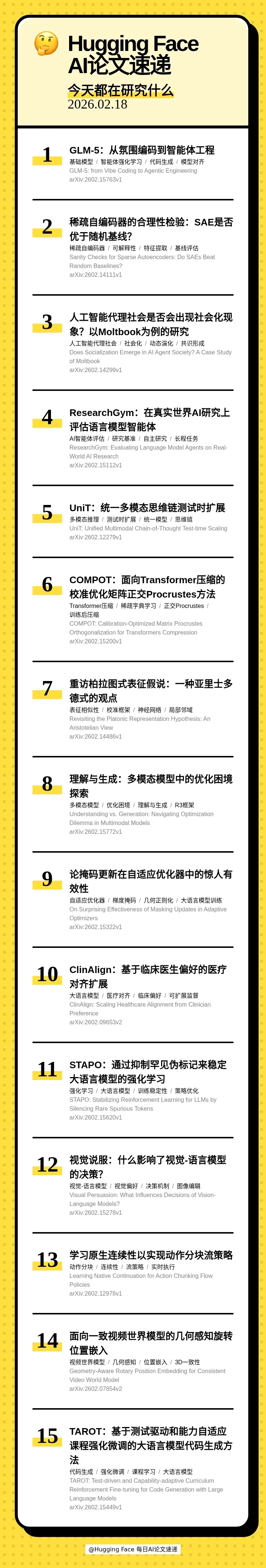本期的 15 篇论文如下: