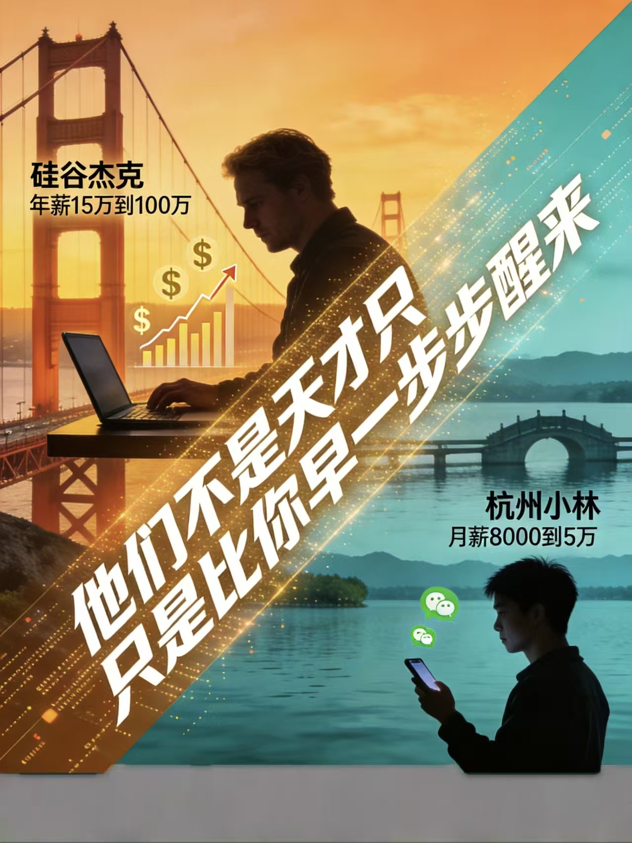 - 真实故事:硅谷程序员杰克与杭州文案小林,如何用AI从“打工人”到“自由人”。