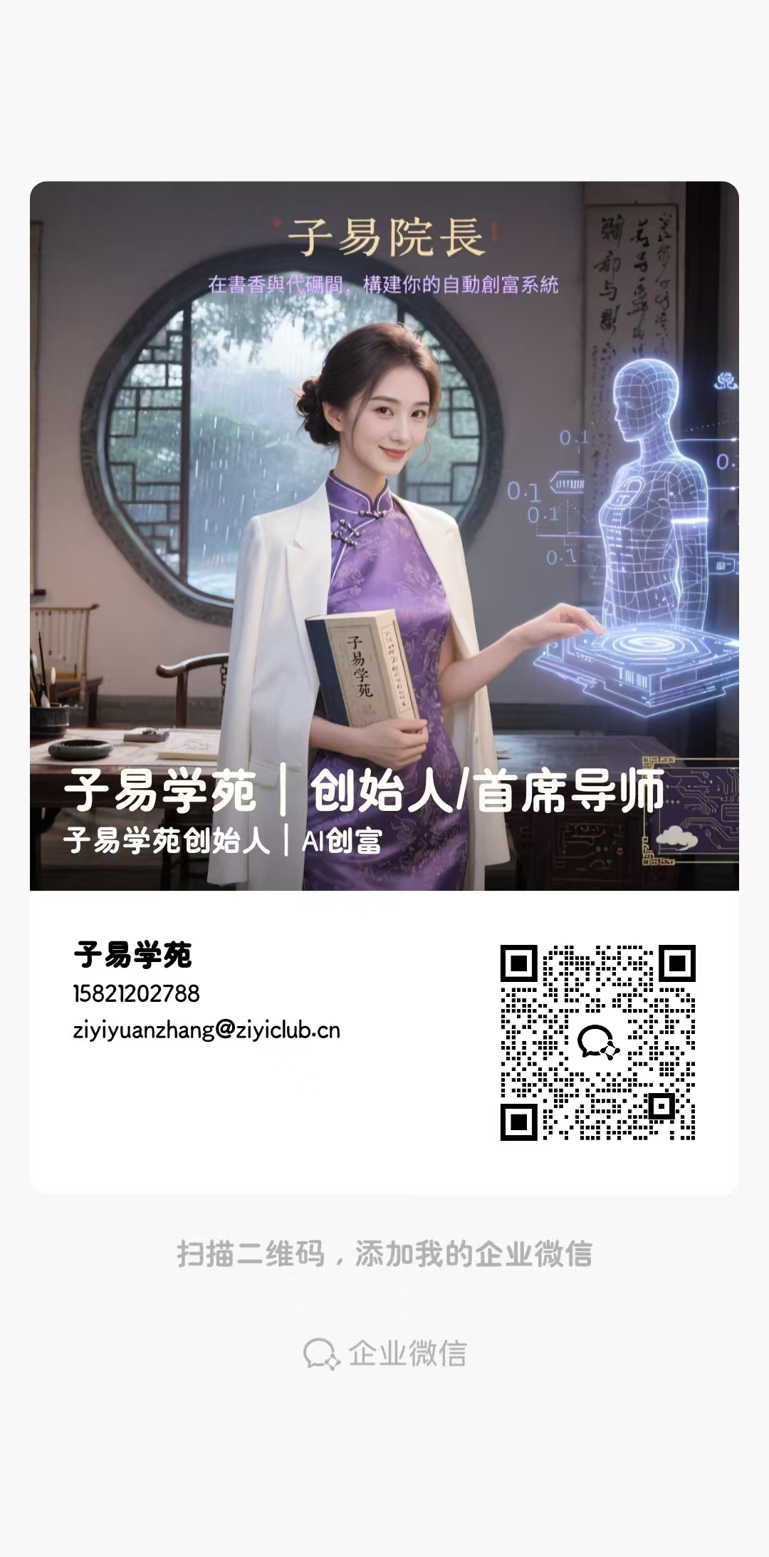 因此,在《子易AI创富实验室》里,我们不谈虚妄的概念,不制造焦虑。我们只聚焦一件事:如何运用AI技术与系统性思维,为你构建一个从个人财富到生活质量的“良性增长飞轮”。