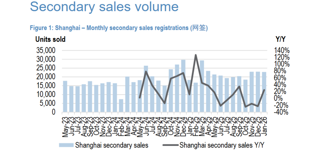 图1(上海月度二手房网签量)显示,1月上海二手房网签2.28万套,同比增长25%看似亮眼,但因去年春节在1月、今年在2月,基数不可比,剔除假期影响后同比仅增2%,且2025年上半年销量已企稳,并非新变化。