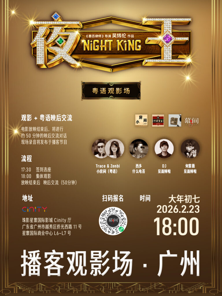 我们将在广州做《夜王》的「苔上见」观影场哦,2月23号晚上6点,照例依旧有欢迎大湾区的朋友来参加