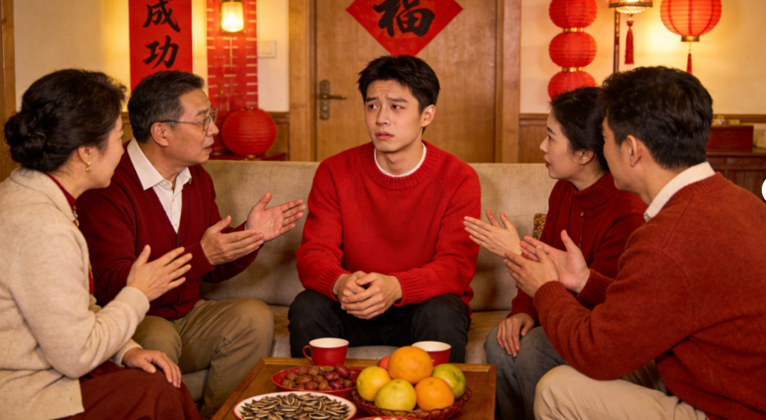 很多亲戚一年只在春节期间见一次,但热情从不缺席。他们好奇(curious)你的工作、收入、感情状况等等,仿佛瞬间化身为“家庭面试官(family interview panel)”。