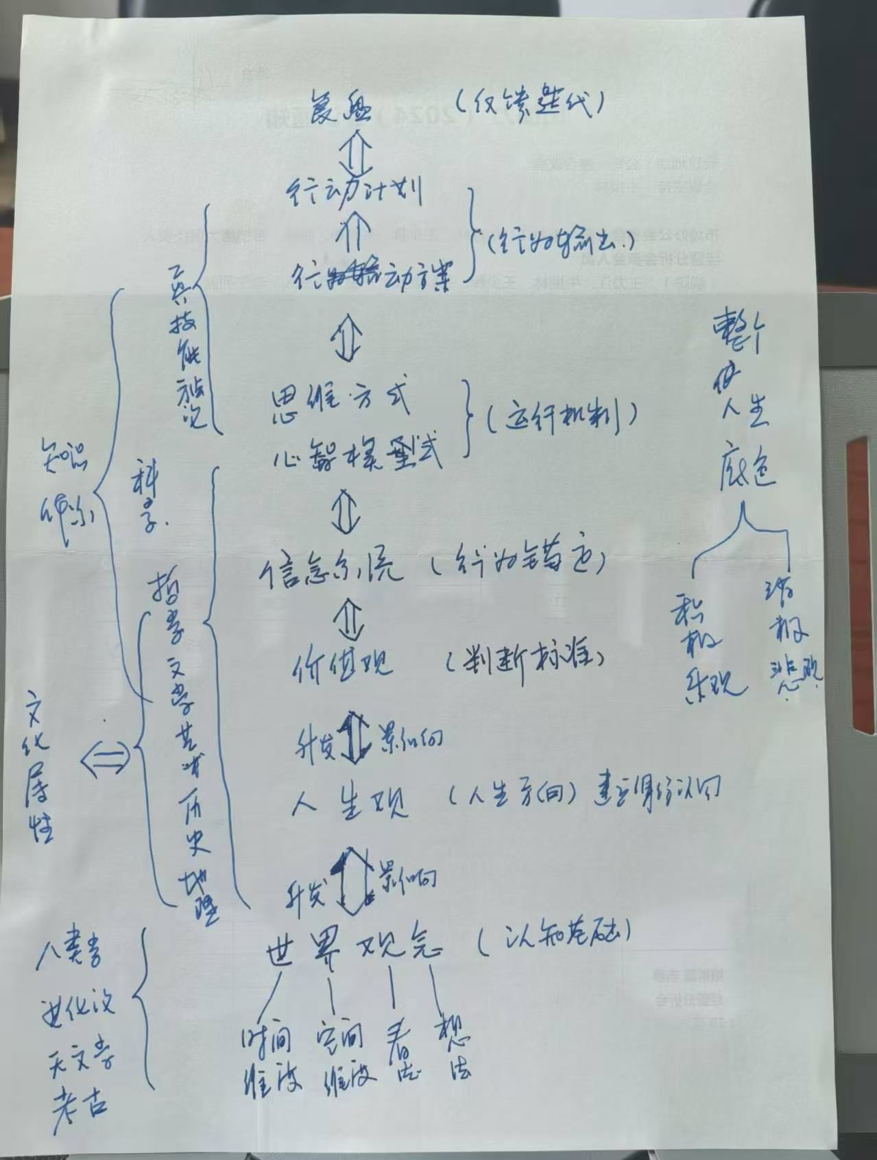 可能是由于工作的习惯,父亲很喜欢搭建各种各样的系统。他观察一件事情和人也恰是如此。年轻人的迷茫其实一方面是将传统社会规训奉为真理的教育系统的肤浅;另一方面是决策能力与素养不断地被剥夺。一个决定从来不是凭空冒出来的。你以为是当下犹豫,其实是更底层的信念在拉扯。这像是一个冰山式的决策模型:水面上是行为与结果,水面下藏着思维方式、心智模型,再往下是人的三观。人一生的选择,大多沿着这座冰山的纹路流动。