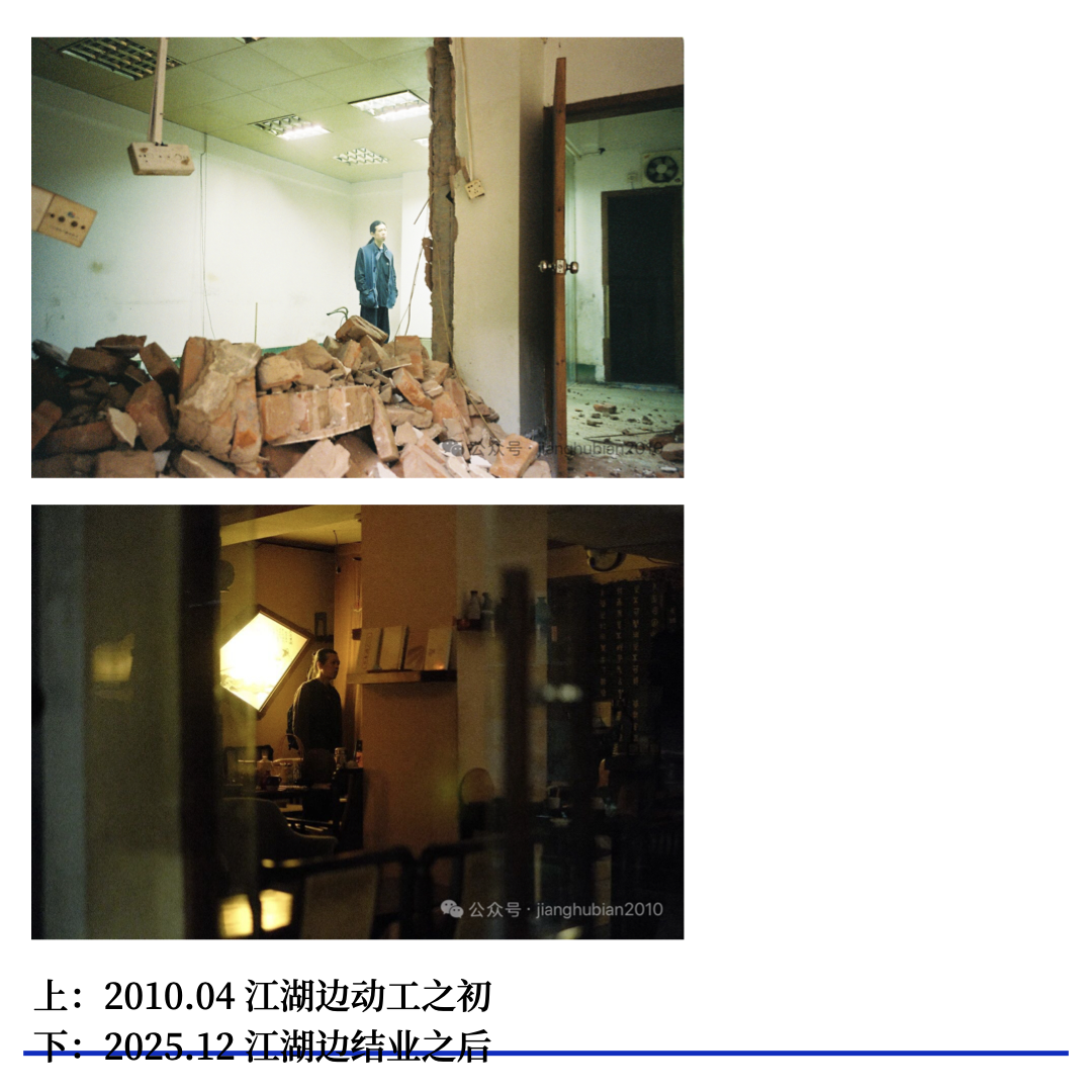 “江湖边”的招牌已经被拆去,墙上字的痕迹还看得出来,我和笑余坐在树荫下的乒乓球台上,喝着威士忌,说起那些过往的事情,很想跟他去自贡,去过那种闲散又真挚的时光。