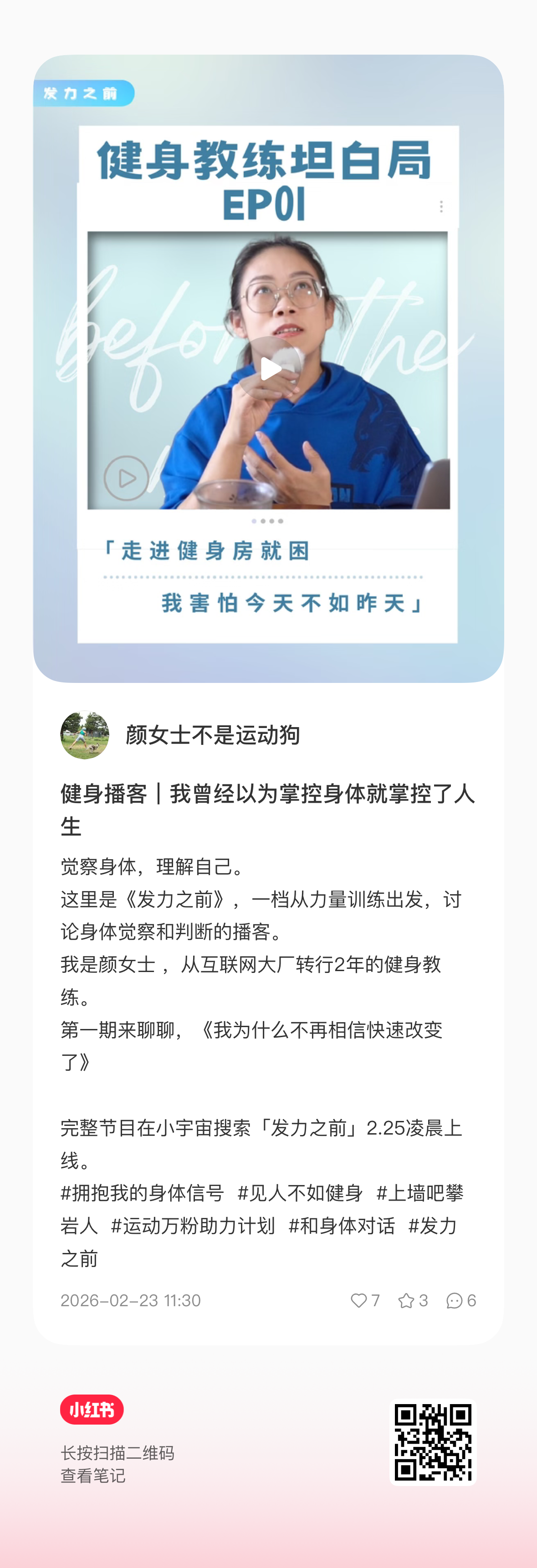 - 介绍播客定位:从力量训练出发,讨论身体觉察