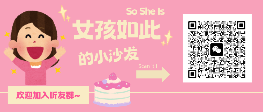 《女孩如此》持续征集听众朋友们的投稿啦~如果你有想听我们聊聊的话题或者想分享的故事,欢迎投稿到邮箱:1582990226@qq.com~