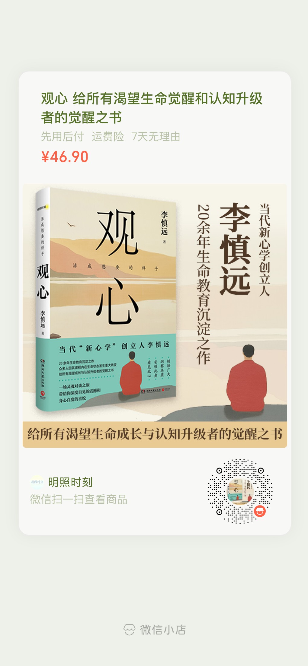 非常感谢李慎元老师分享,本期我们将从评论区抽取 6位幸运听众,送出《观心》📚,大家在评论区分享自己的听后感笔记,点赞时间截止下周一!🎁