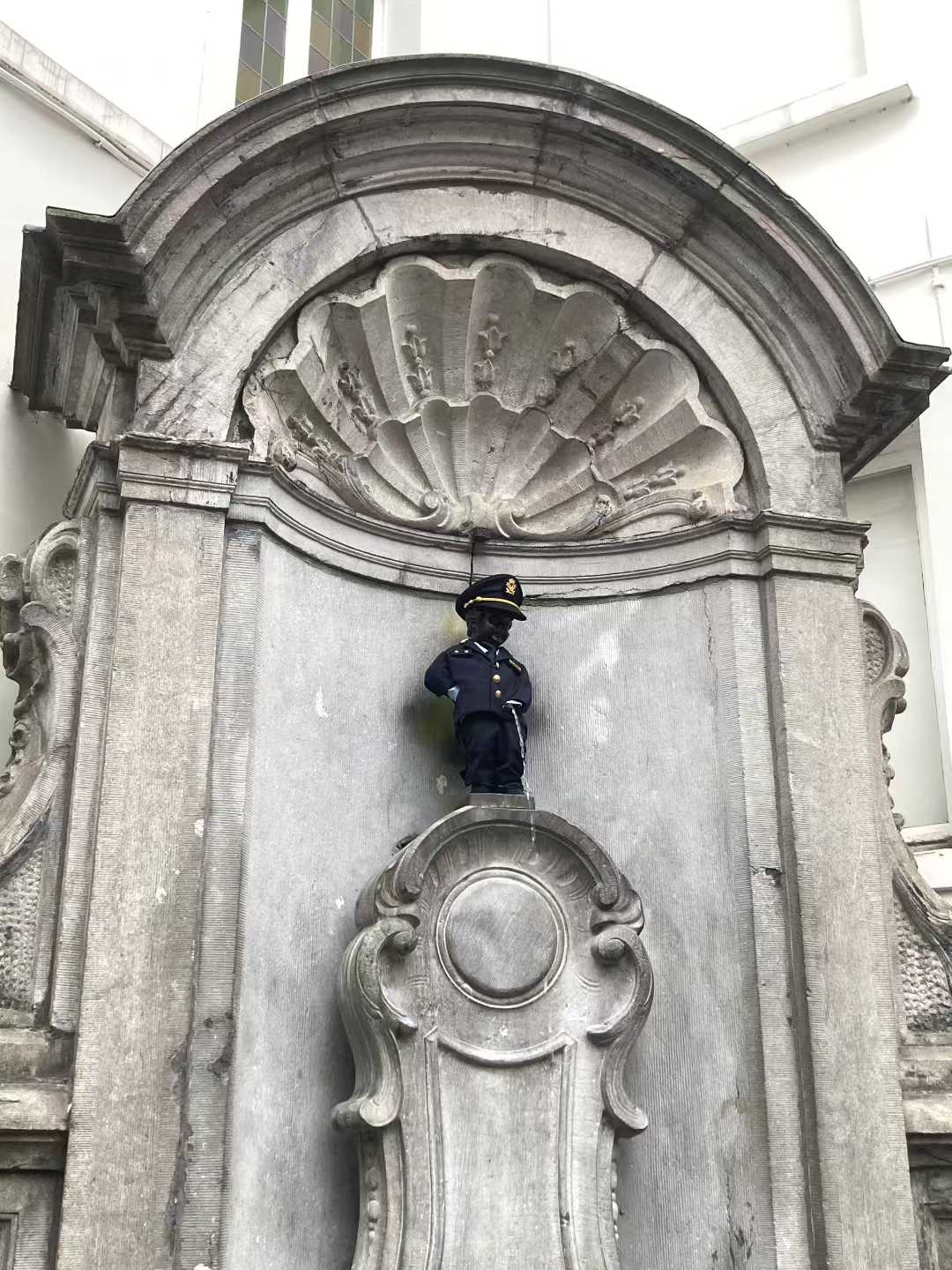 周一美术馆关门,只能看穿了警服的“尿尿小孩”。