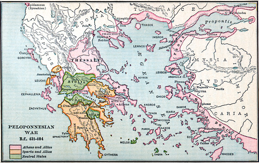 雅典与斯巴达的决裂最终导致了一场旷日持久的战争,即伯罗奔尼撒战争。在成功地击退了波斯的侵略之后,希腊社会获得喘息之机,经济与文化走向昌盛。但是之后发生在希腊城邦内部的这场伯罗奔尼撒战争使希腊大陆上各个城邦的文明成果毁于一旦,也使雅典和斯巴达这两大巨头在战争中损失惨重。耶鲁大学教授唐纳德 · 卡根曾经谈到,对于当时生活在希腊大陆上的人们来说,伯罗奔尼撒战争不啻一场世界大战。不仅仅希腊大陆惨遭战火的蹂躏,就连西边的意大利的西西里和北边的马其顿也被战火波及。曾经野心勃勃的波斯也在其中搅浑水,试图浑水摸鱼。曾经因波希战争建立起来的希腊城邦联盟体系因伯罗奔尼撒战争分崩离析,希腊文明也由此从鼎盛走向衰落。