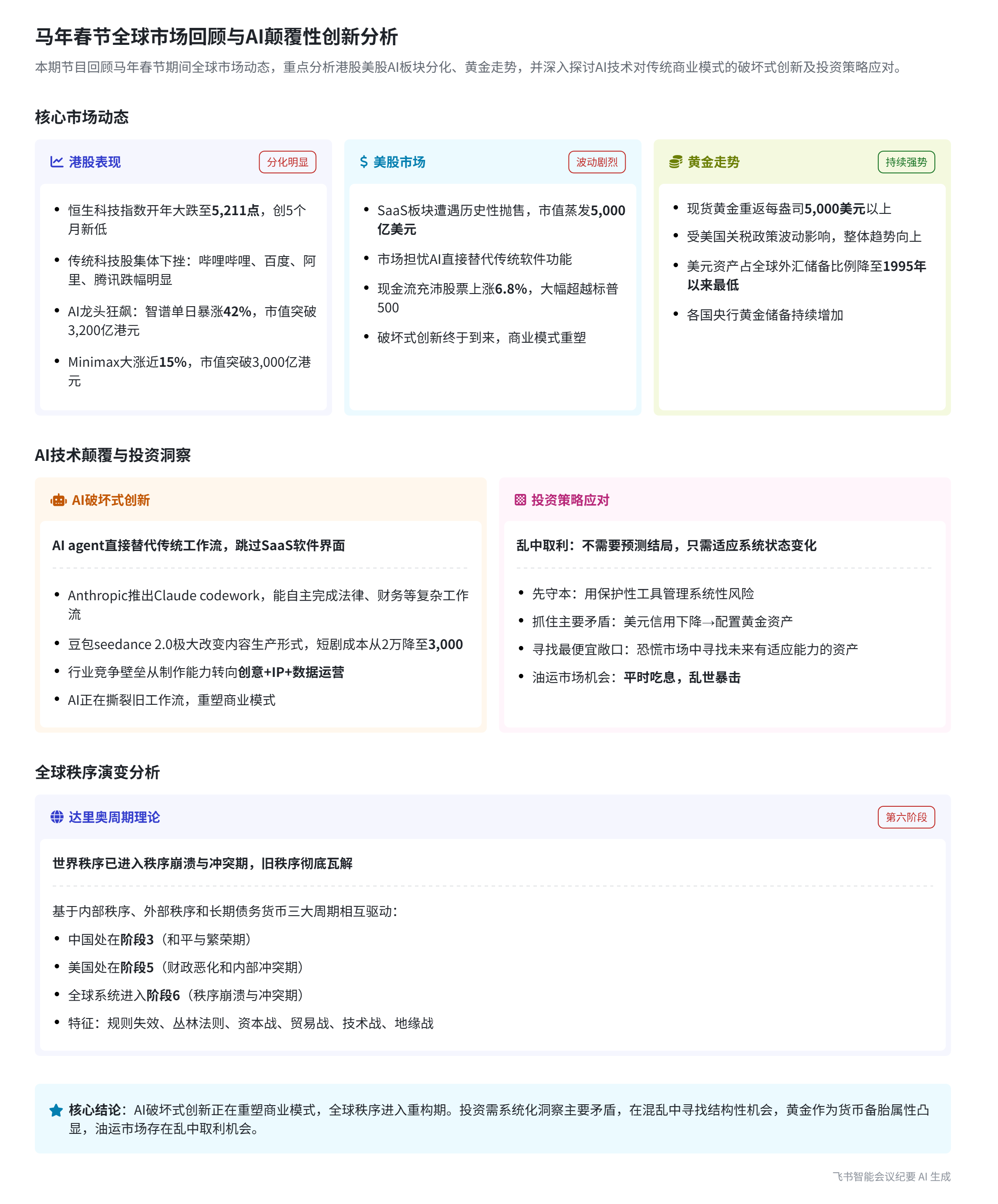 AI的破坏式创新正在格式化旧商业模式,达里奥发长文《It's Official: The World Order Has Broken Down》宣告世界秩序瓦解,世界已经进入大周期的第六阶段,即一个没有规则、充满混乱、强权即公理的时期。