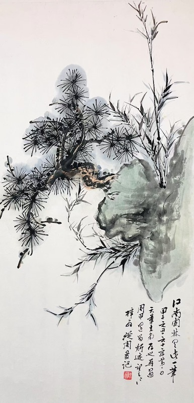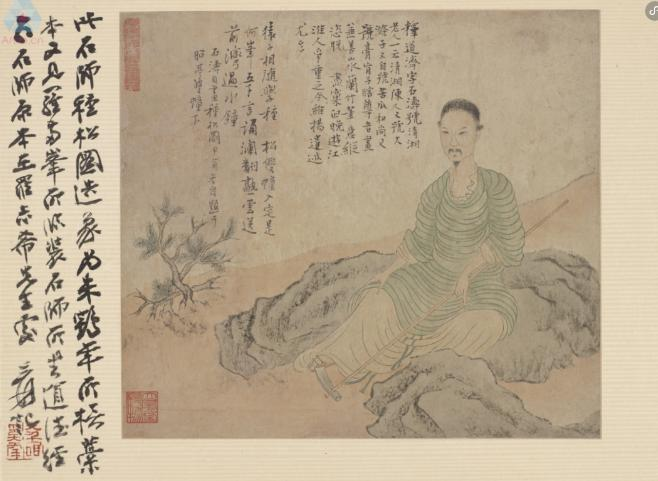 《石涛自画像种松图》朱鹤年临本 张大千跋