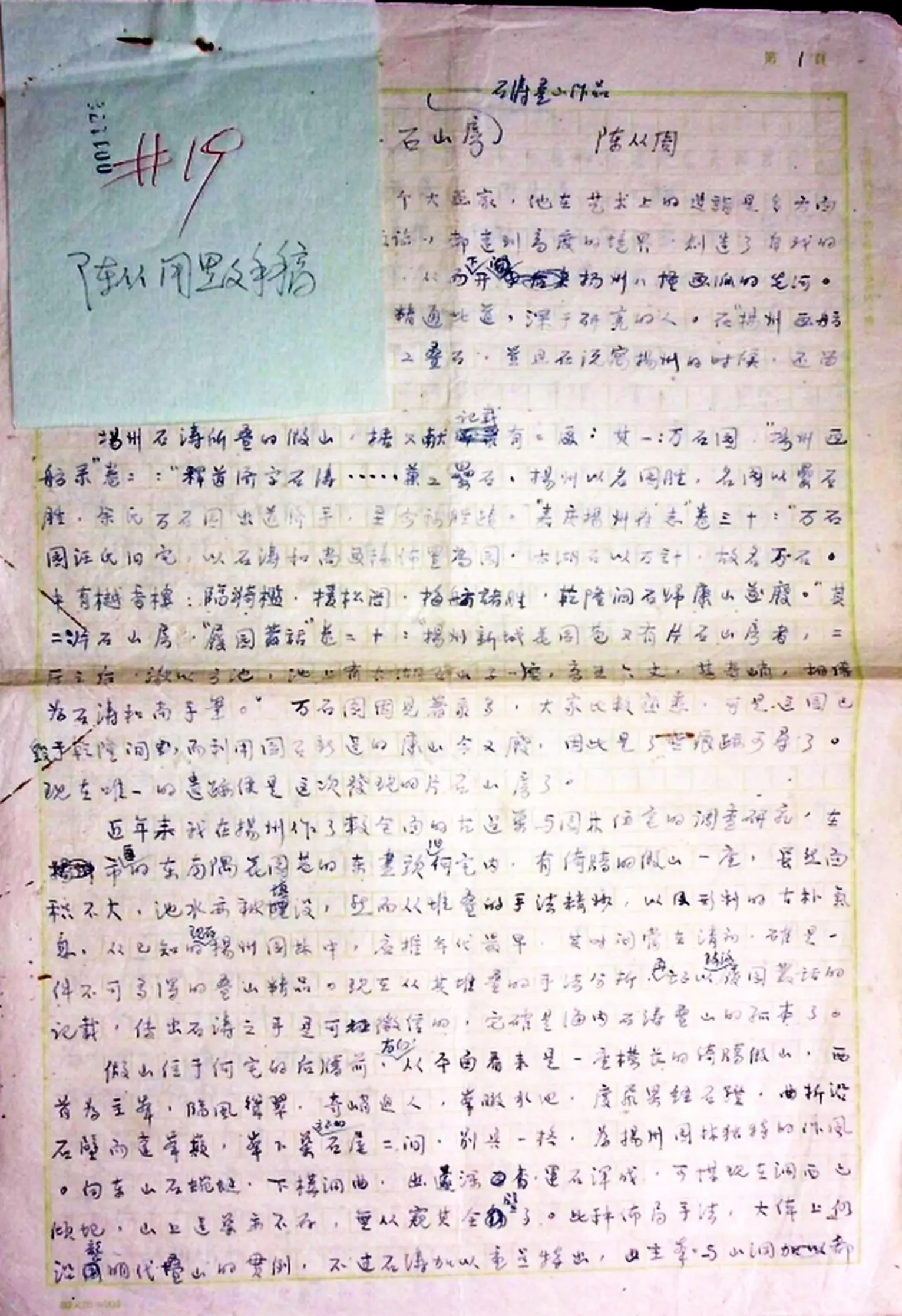 陈从周“片石山房”手稿