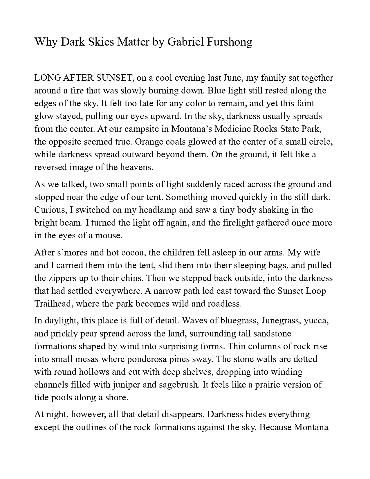 Adapted from the original article and rewritten for listening: Why Dark Skies Matter by Gabriel Furshong