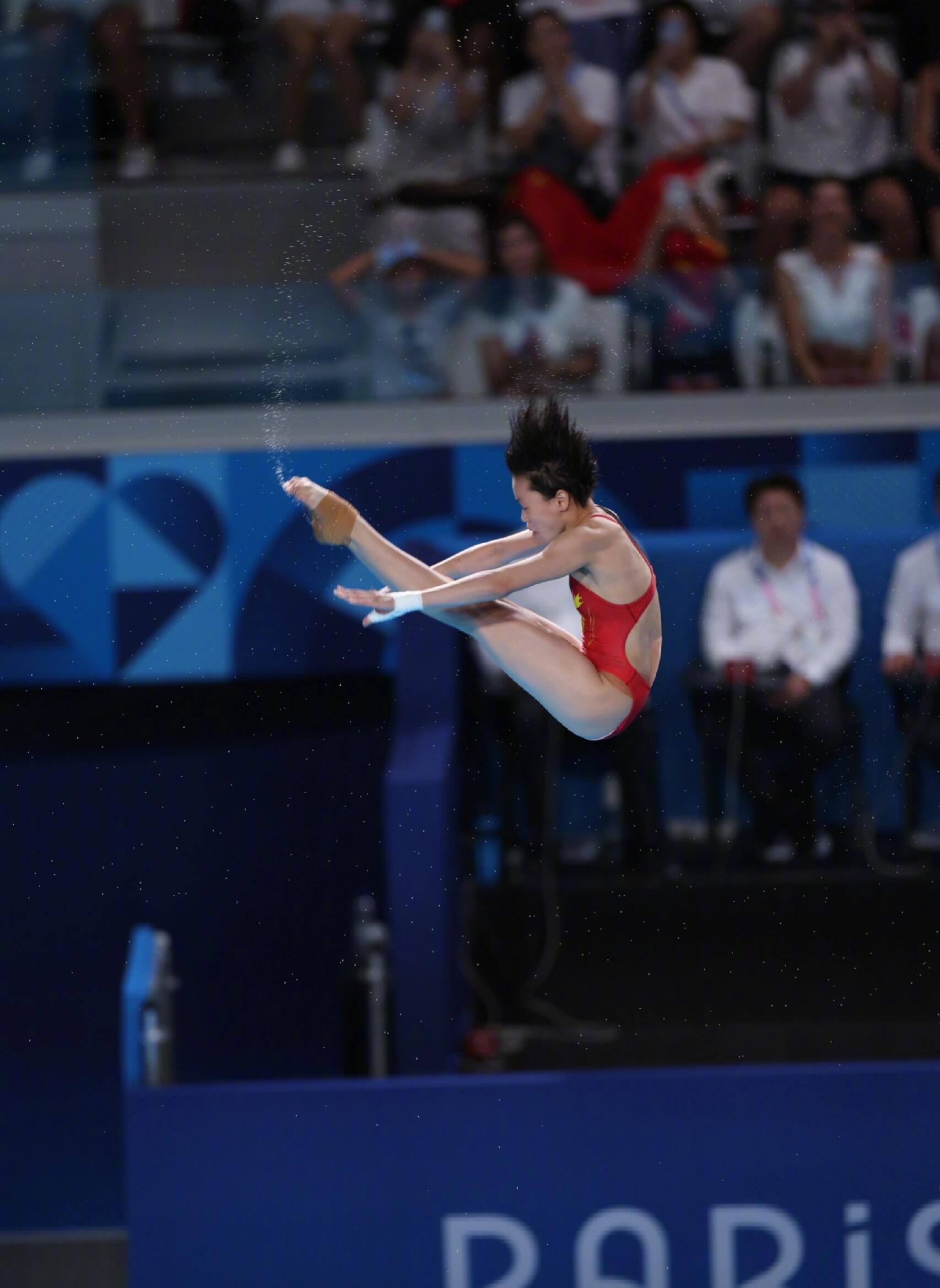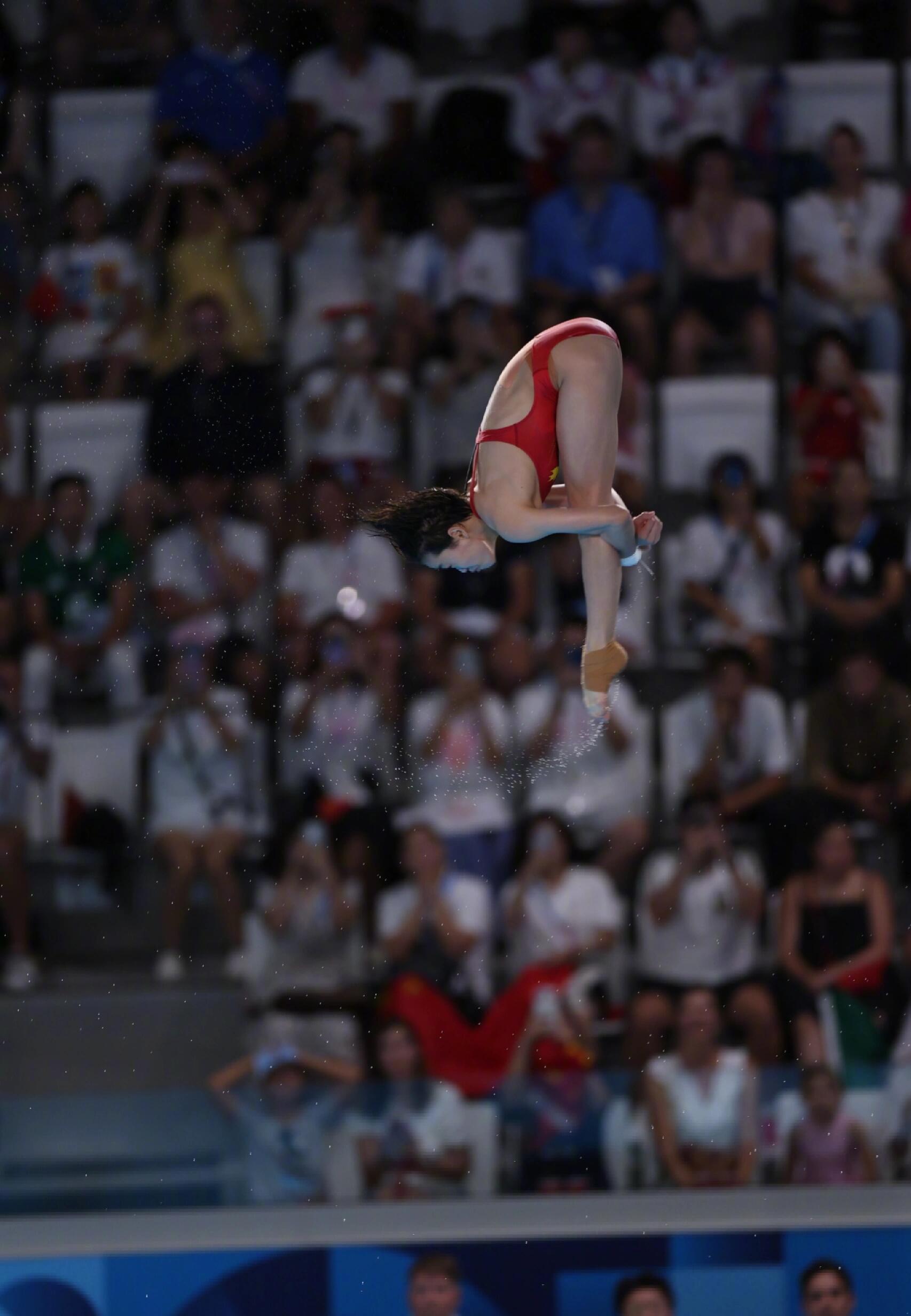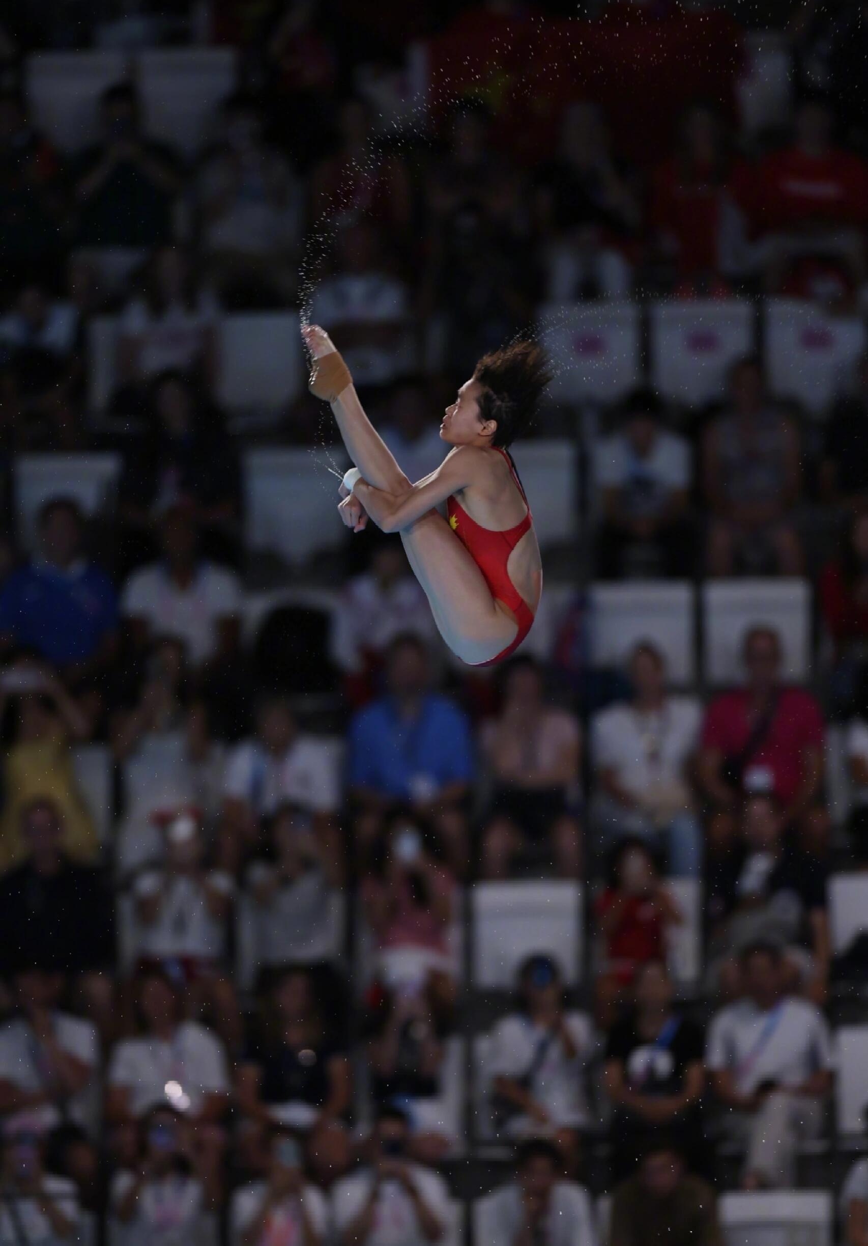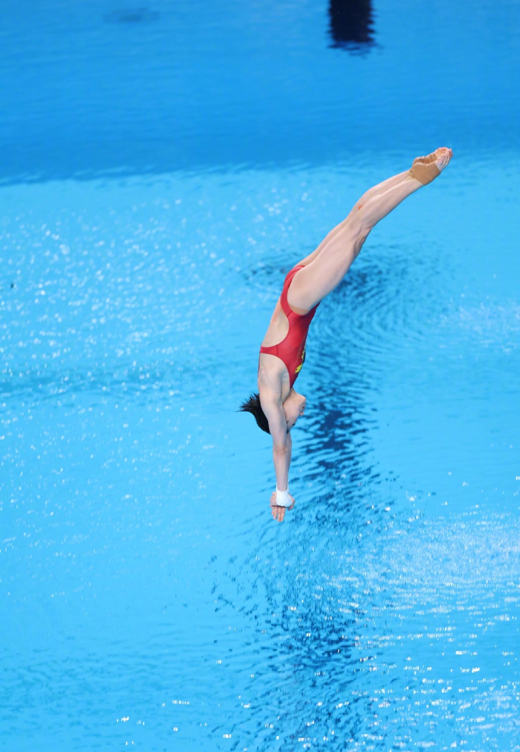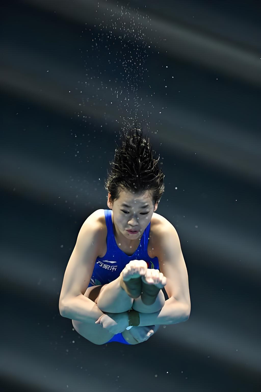 在东京奥运会上,全红婵“水花消失术”的凌空照,这一赛场瞬间,可以说是定格力与美的极致张力。画面里,少女身形如燕,舒展于蓝幕碧水之间,身体绷成笔直的弧线,肌肉线条利落分明,入水前的瞬间静谧又充满爆发力,水面澄澈无波,可以说,将“零水花”的传奇凝于一帧,定格成历史性经典。