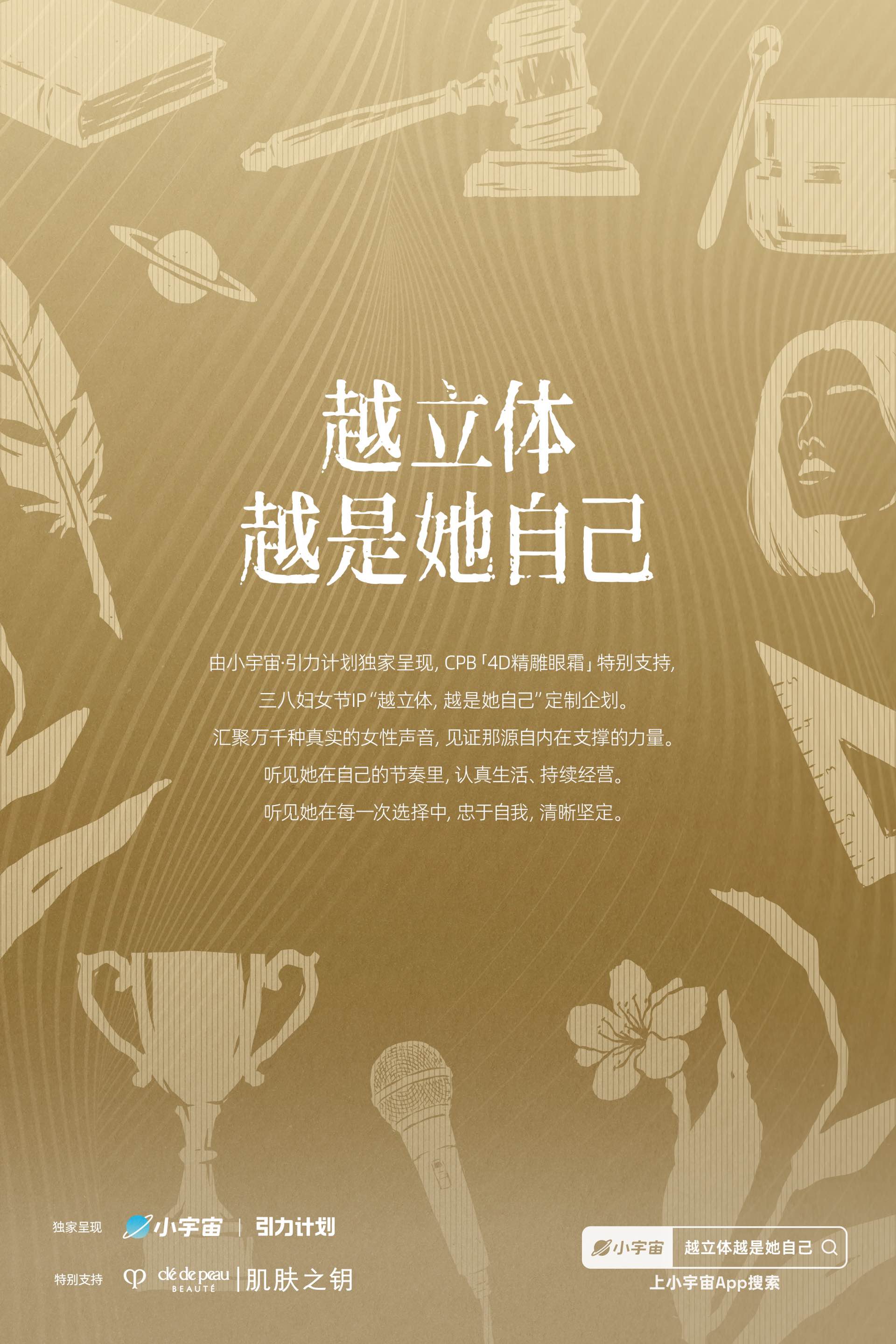 本期节目是小宇宙・引力计划独家呈现,CPB「4D 精雕眼霜」特别支持的三八妇女节 IP 「越立体,越是她自己」定制企划系列节目之一。欢迎大家点击链接,收听企划更多精彩节目。希望听到这期节目的每一位女性,都能向内找到自己的支撑力,出发无限延伸自我的可能性,无论走向哪里,都走在向上的状态与节奏里。另外也感谢 CPB 提供的 5 份 CPB「4D 精雕眼霜」正装,快去评论区互动收获新年的第一份礼物吧!希望新的一年里,能陪伴大家从呵护眼周开始,一步步,走向更好的自己。