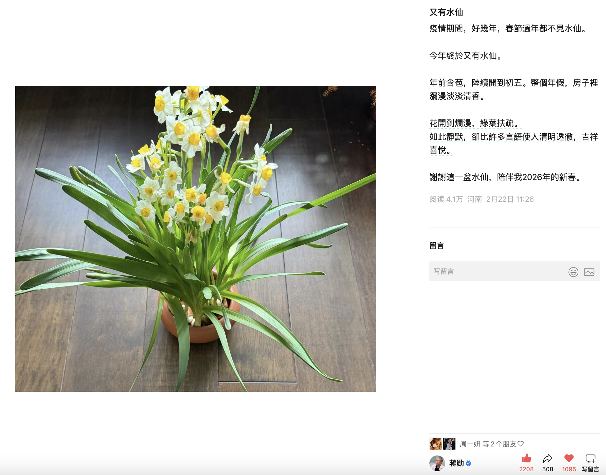 - 阅读蒋勋的《又见水仙》,体会文字带给读者的安定感