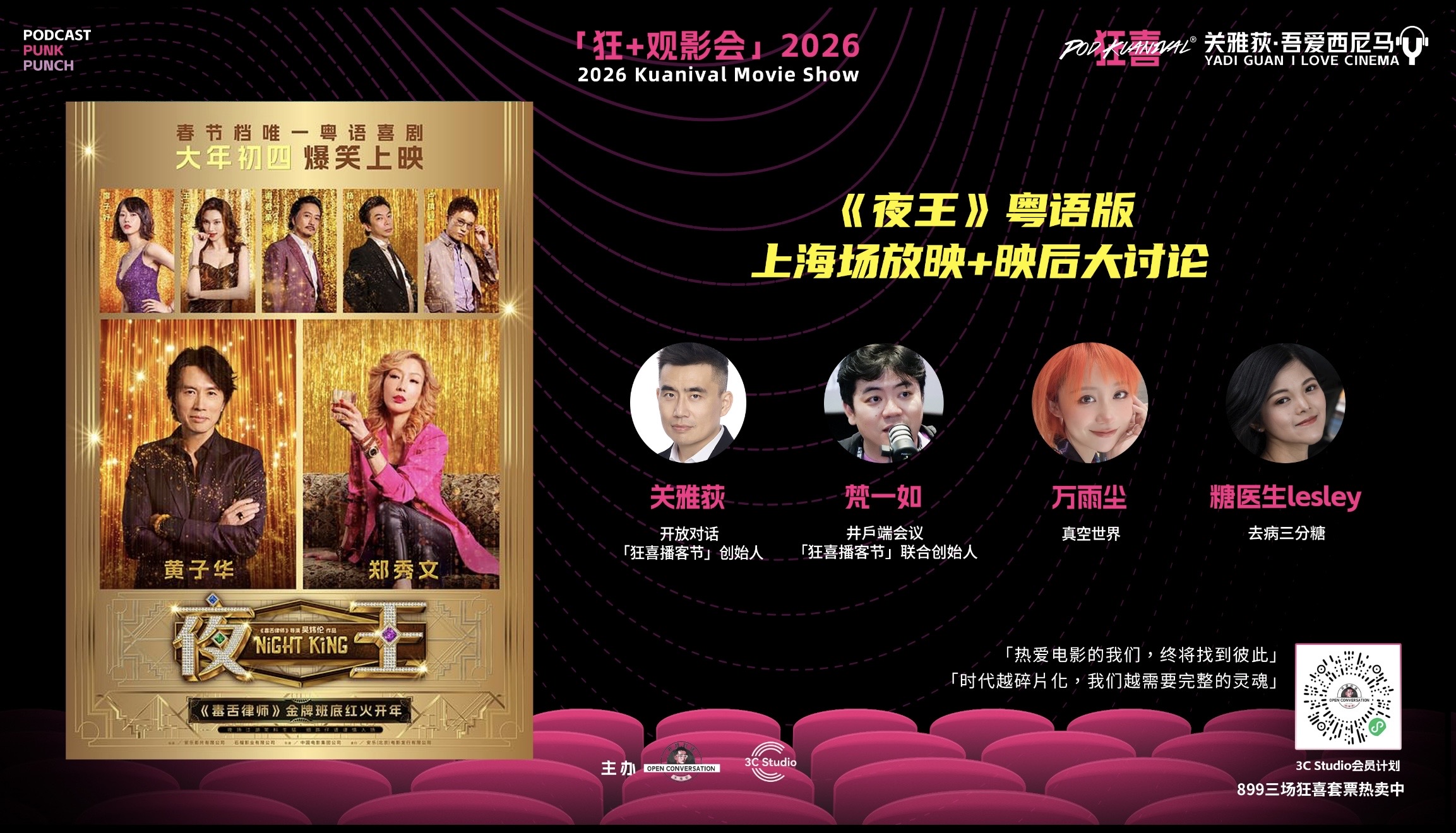 本期节目于2026年马年春节档尾声录制。作为行业观察者,我们必须直面这一年档期红利的彻底消散。对谈者包括关雅荻、梵一如、万雨尘,以及为了本场对谈特意从香港改签回沪的“黄子华十级学者”糖医生lesley。四位嘉宾分别从行业趋势、社会学视角、女性主体性及资深影迷文化四个维度,构建了对《夜王》的立体解构。