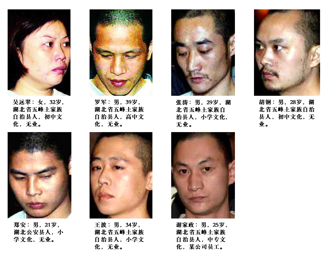 七名犯罪嫌疑人的照片和相关信息。