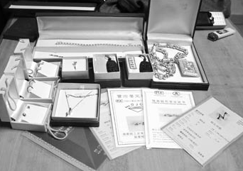 犯罪嫌疑人用赃款购买的部分珠宝首饰。