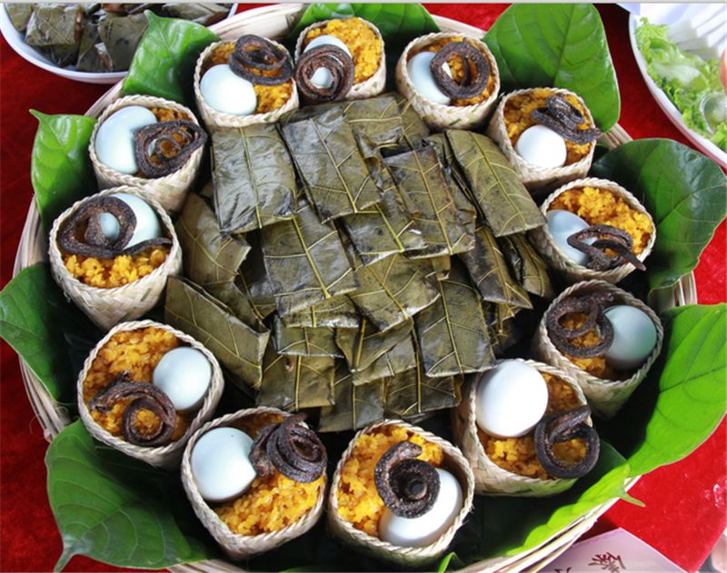 秧箩饭:田间劳作的糯米饭,用密蒙花染黄色