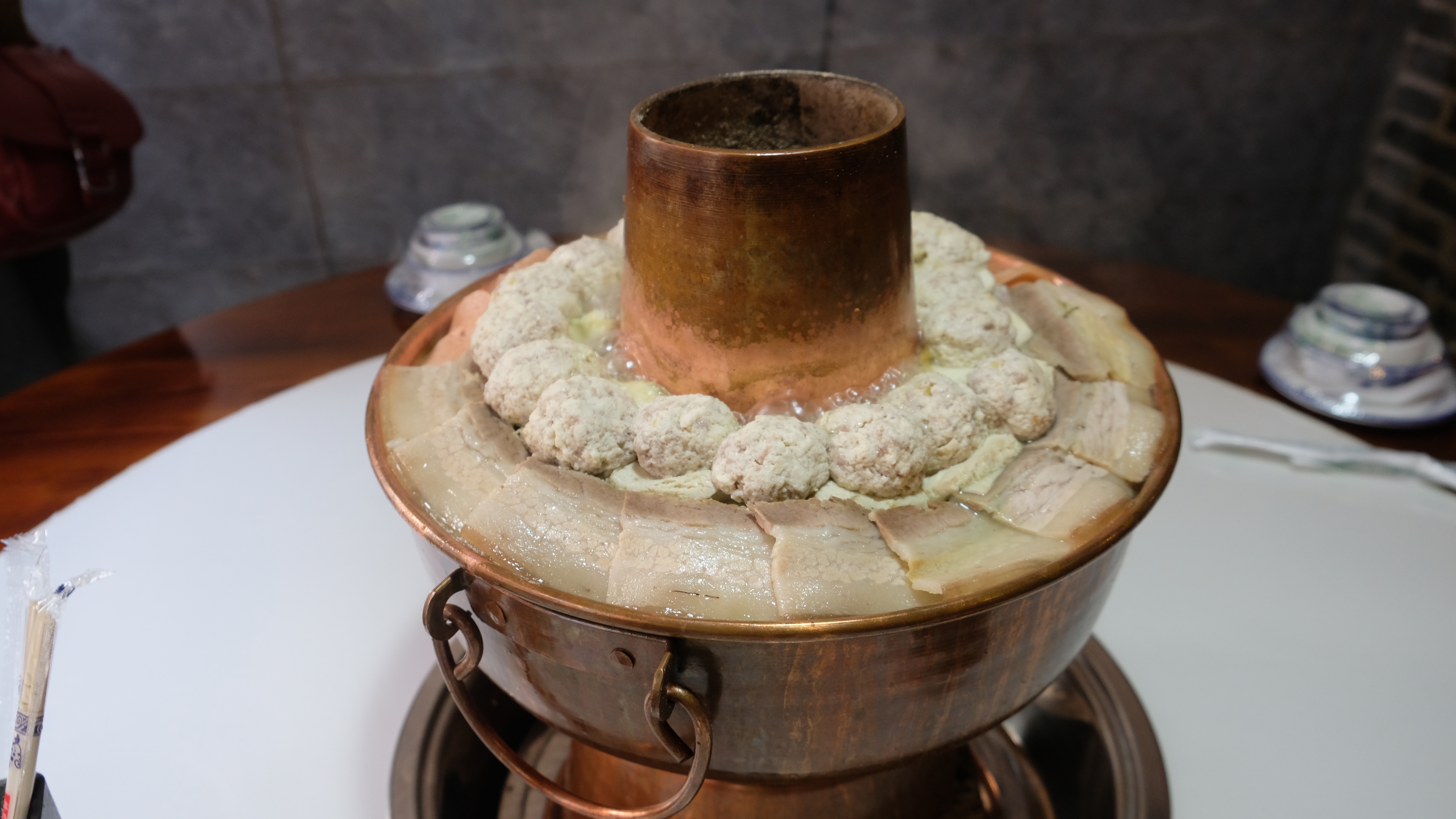 做法:层层码放食材(排骨、鸡肉垫底,中间耐煮食材,上层熟肉)