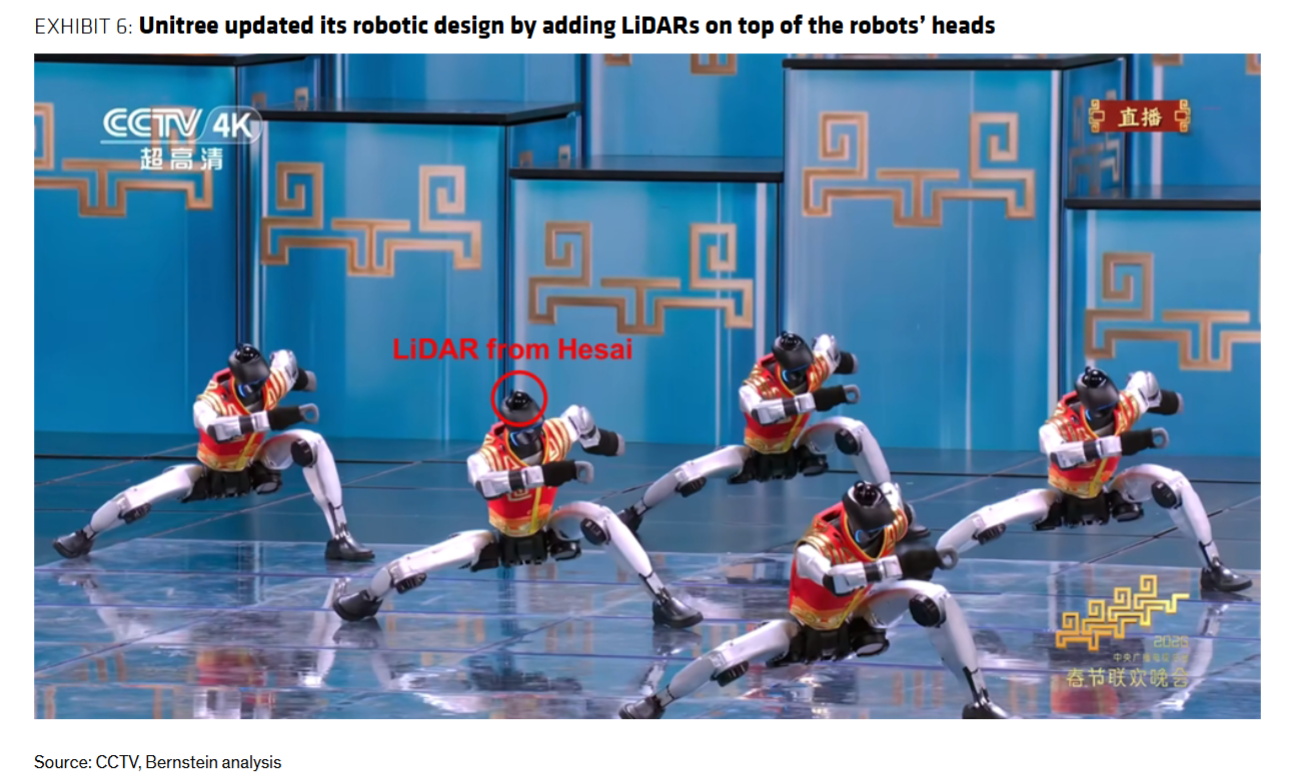 其他中国品牌的表现同样值得关注,MagicLab与Noetix虽在表现上稍逊于优必选,但均完成了舞台移动的核心展示,研报中Exhibit 2和Exhibit 3分别记录了二者的春晚表演画面,这一突破实现了品牌的大众曝光,更重要的是,二者当前技术水平已超越2025年的优必选,印证了中国人形机器人企业的集体快速进步。