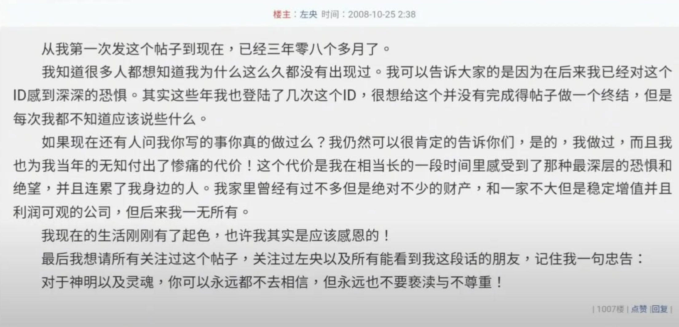 论坛|帖子|2000 年|天涯|猫扑|豆瓣|莲蓬鬼话|左央|盖楼|灵异游戏|不信邪|探灵|削苹果|倒头饭|血腥玛丽|四角游戏|影子|雪山探险队|四角婆婆|厄运|印堂发黑|赛道|敬畏|因果|尊重