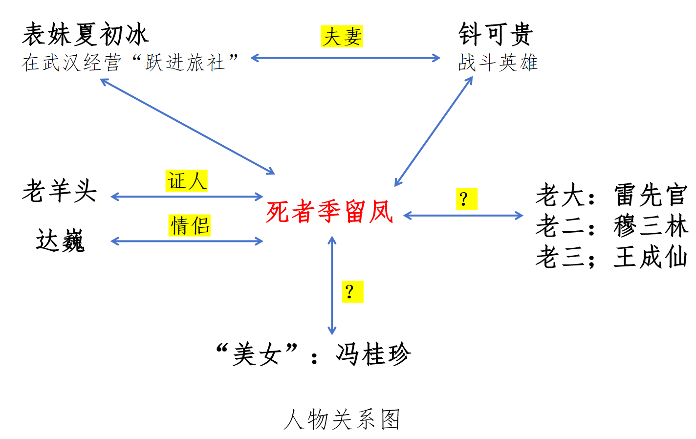 *声明:本期声音节目内容为主播基于节目及相关网络资料的客观解读,本期资料来源于“《湖北日报》、《长江日报》、湖北省武汉市公安局1963年刑侦部分卷宗”,受限于主播的知识、认知和经历,可能存在局限性,内容仅供参考,欢迎指正和讨论,且由于案件久远,部分资料为陈旧纸质稿件,因此本次案件图片无法提供,仅提供小屿绘制的时间与人物关系图: