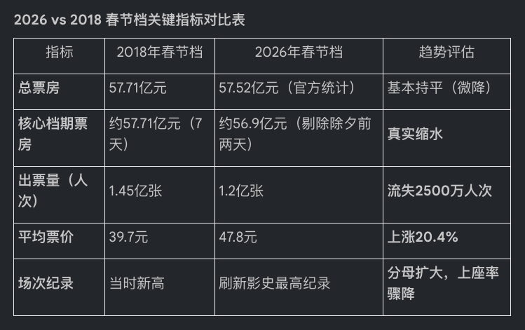 2026 vs 2018 春节档关键指标对比表