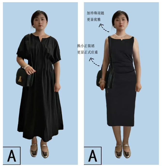 改为一条更正式庄重的小正装裙