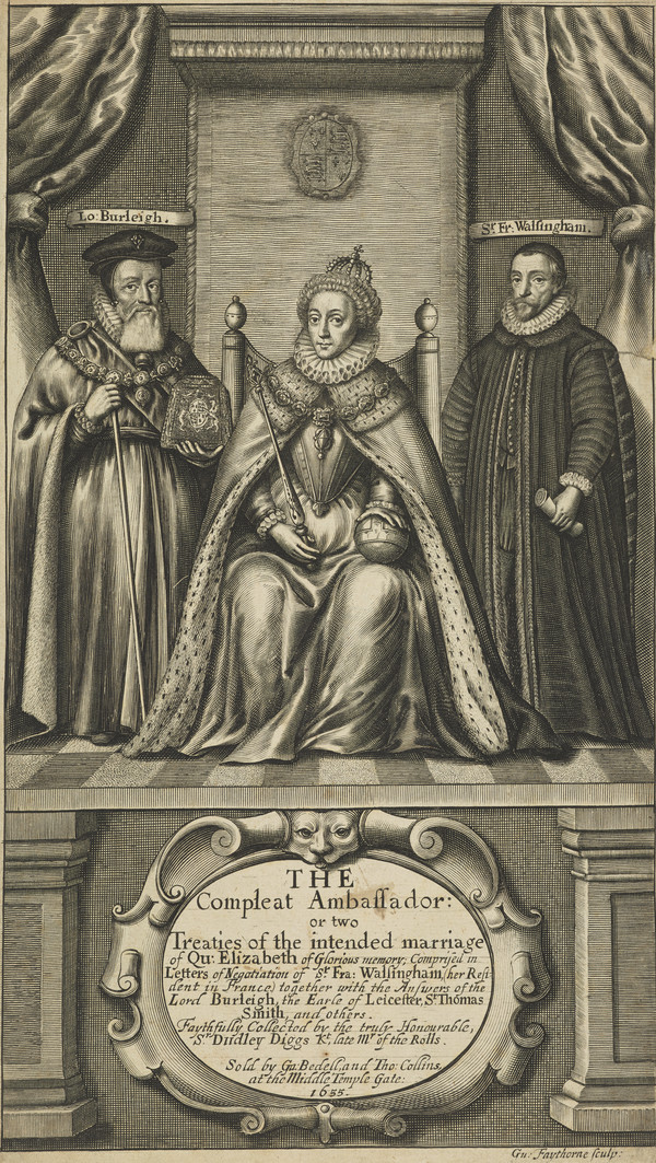 伊丽莎白一世、沃尔辛厄姆与伯利男爵 | 1655年印刷 | Source: National Galleries of Scotland