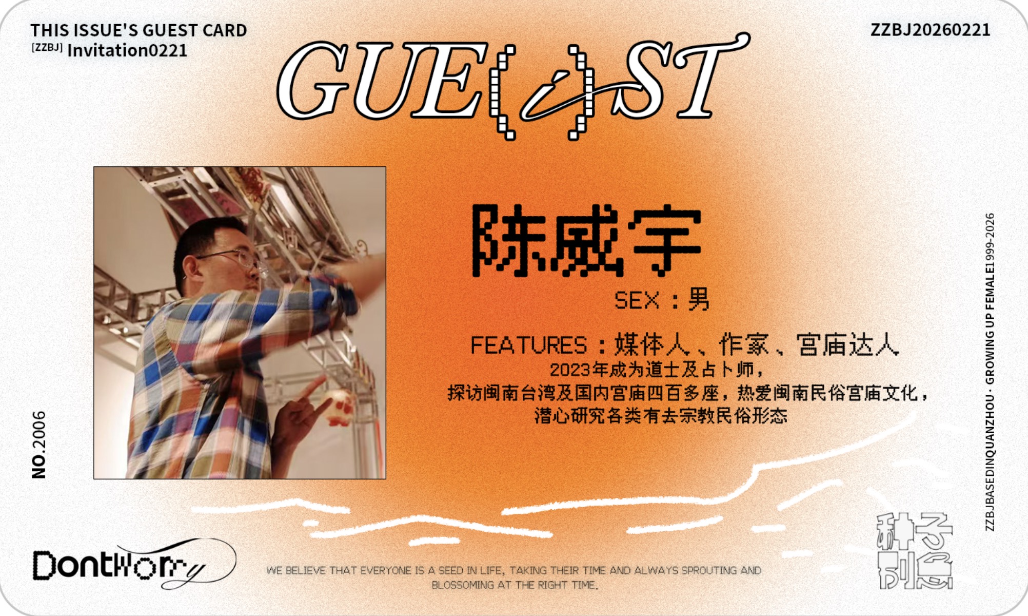 本期我们请到了闽南正统民俗观察者 ——威宇老师。他探访闽南、台湾及国内宫庙四百余座,深耕闽南民俗宫庙文化,潜心研究各类宗教民俗形态。本期将带你解锁闽南求签、掷杯、过香火全流程,拆解 2026 丙午马年流年运势。本命年到底要不要怕?我们扒开表象谈本质,区分核心讲究与商业噱头,不花冤枉钱!解锁十二生肖马年超实用开运小物;最后一起深度思辨:民俗 vs 迷信,年轻人到底该怎么信才不内耗?