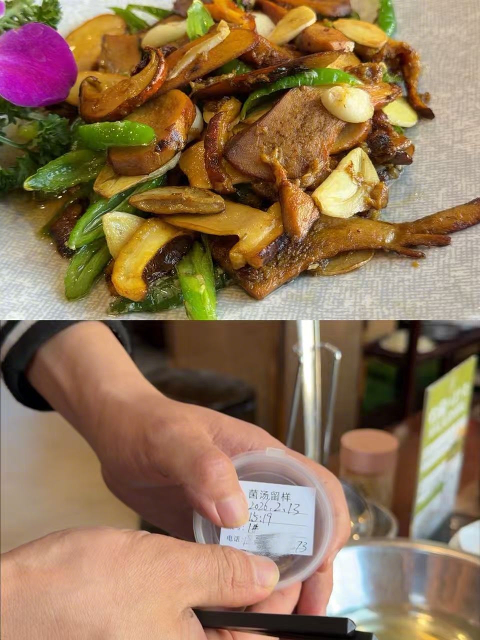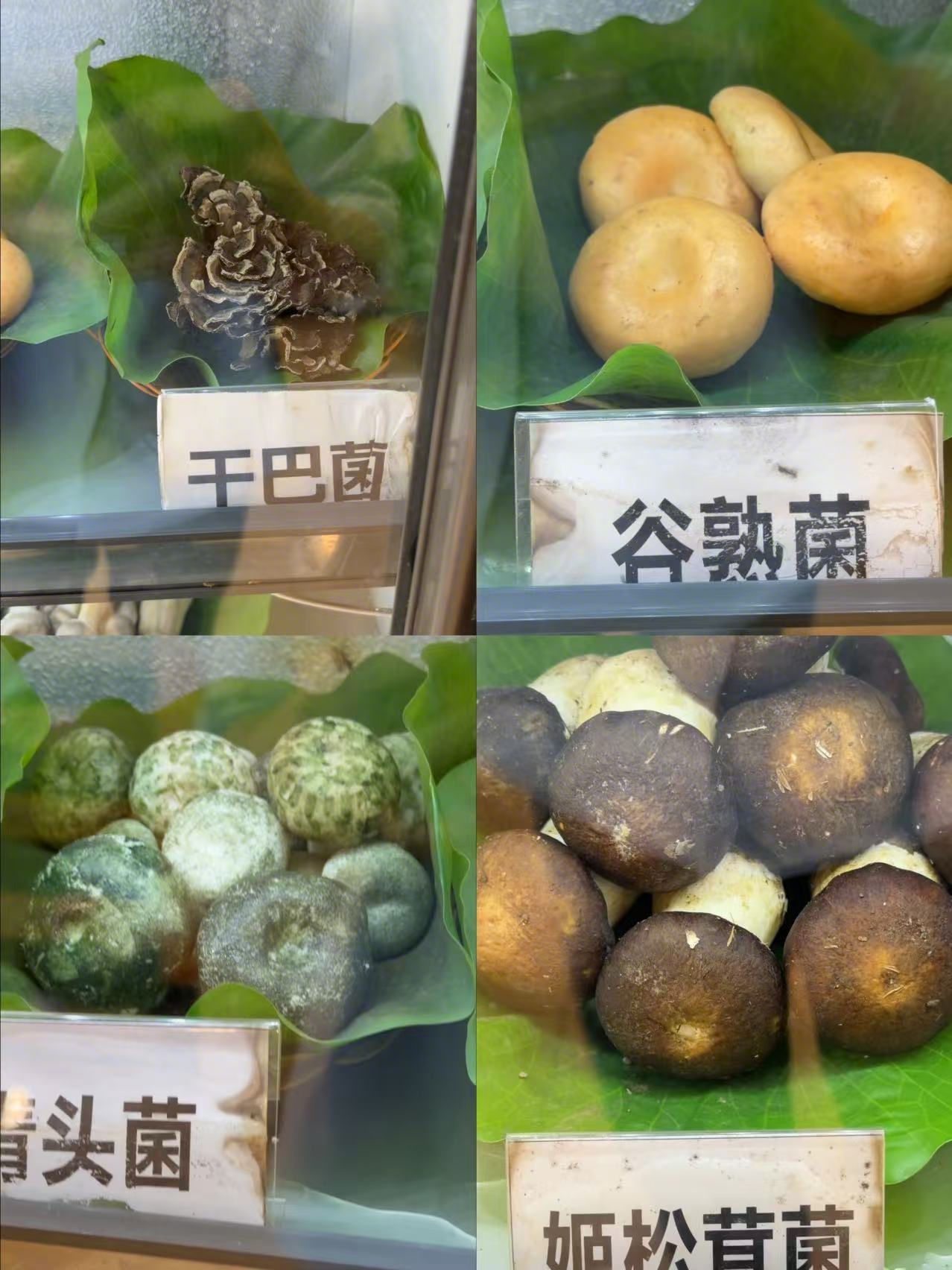 菌子火锅:石锅蒸汽锅形式,鸡/鱼+各种野生菌现蒸25分钟,蘸料吃。鲜味远超海鲜,价格亲民(双人餐不到200元)。关键:每家店都会取样留存,以防中毒——让人吃得既放心又害怕。
