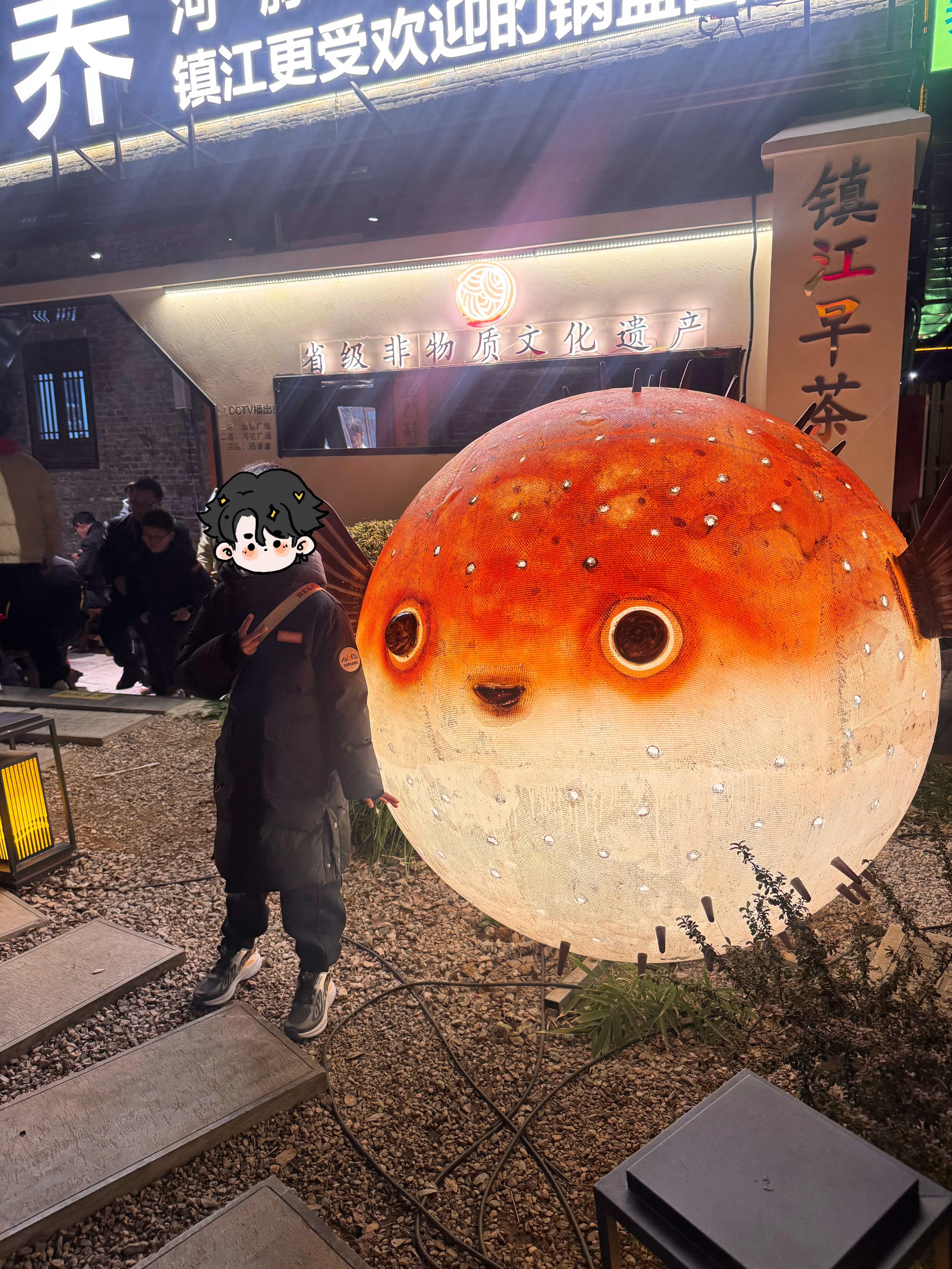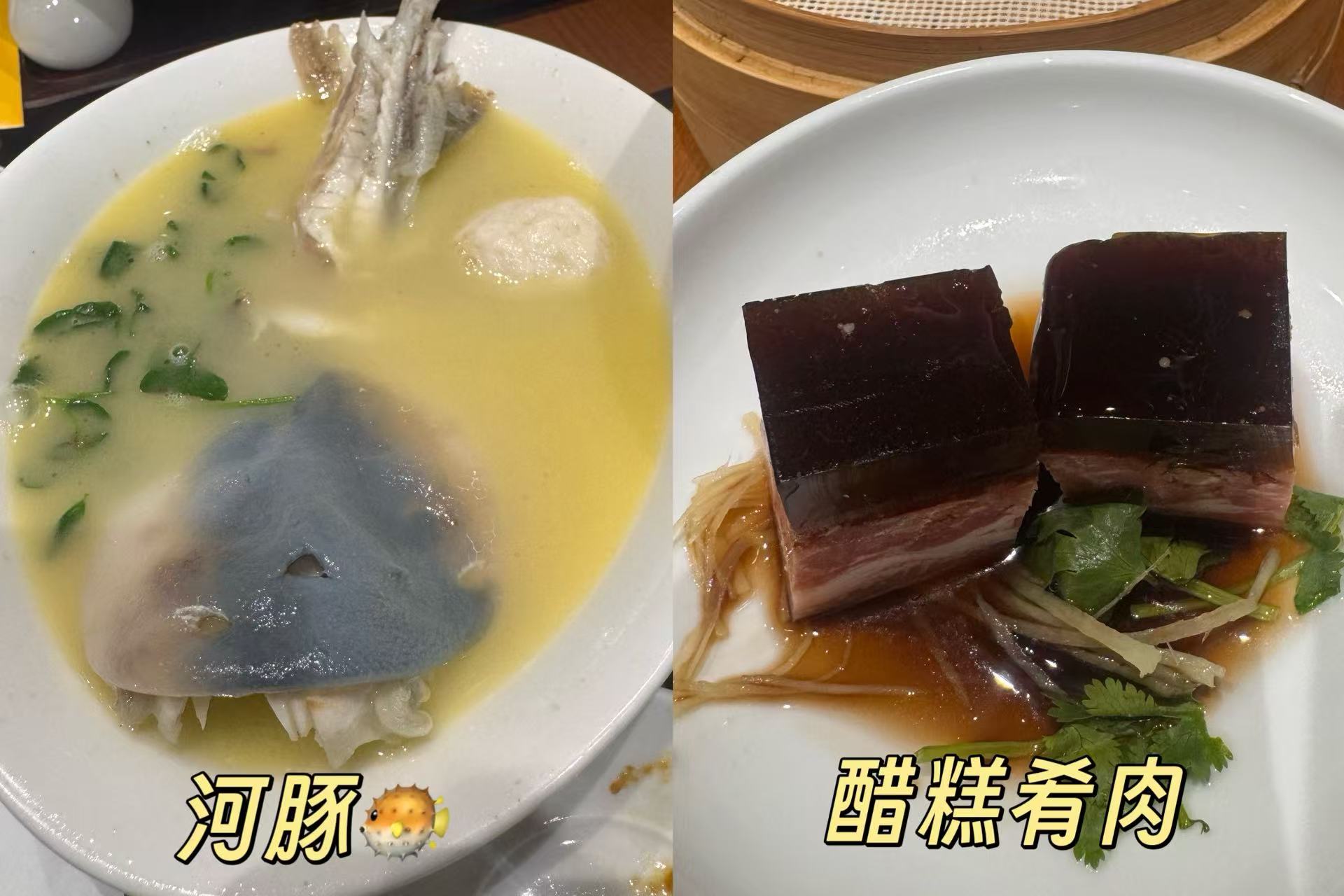这里还有很多美食,锅盖面、肴肉、醋,还有我们第一次品尝了“河豚”。