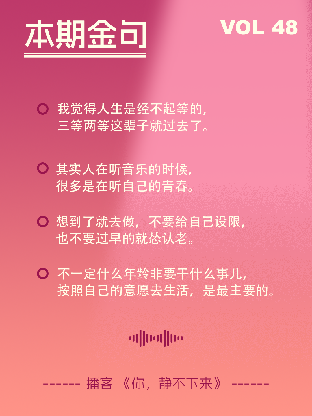 欢迎大家订阅《你,静不下来》,参与我们的互动话题#20多岁最打动你的那首歌是什么?我们将抽取10位听友送出连咖啡的全家桶,感谢收听,我们下期见~