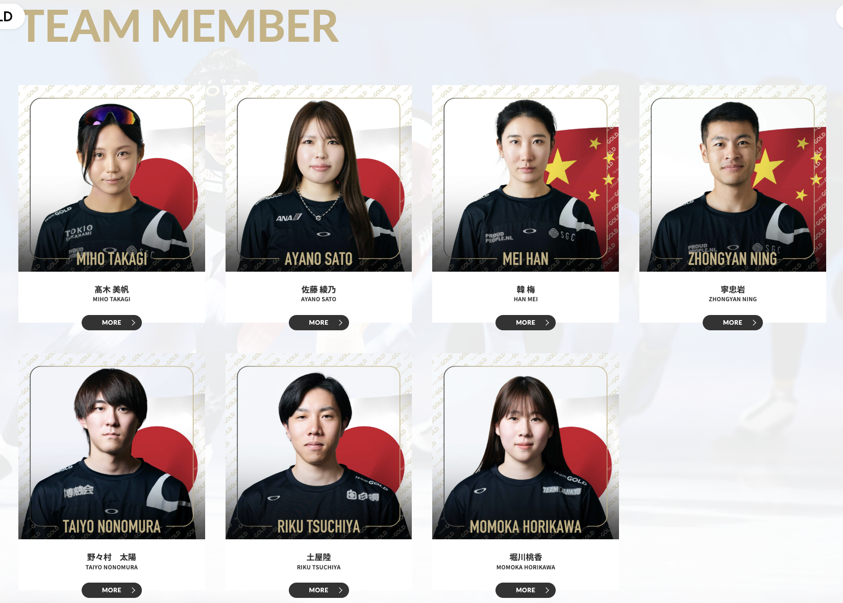 Team Glod官网展示的目前在该俱乐部训练的知名运动员们