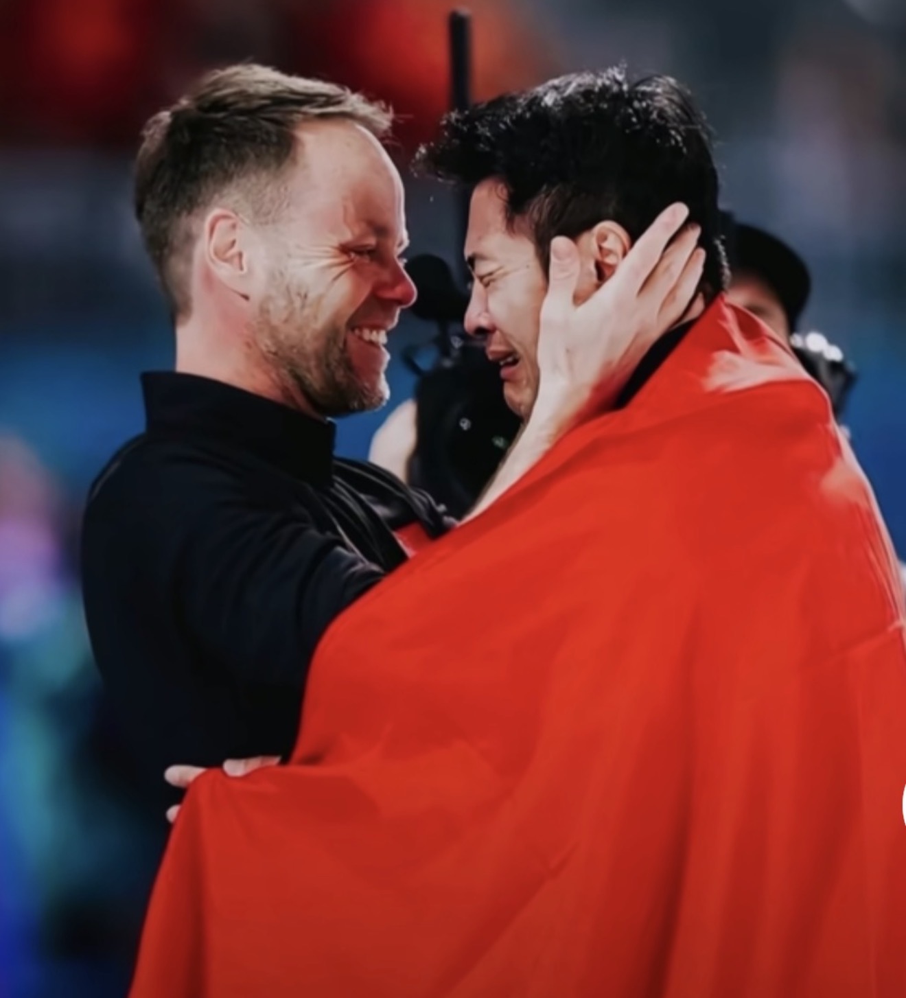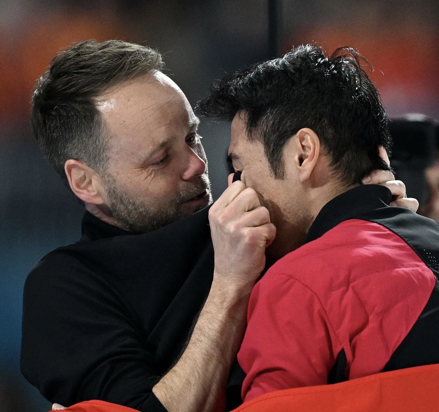在米兰冬奥会的赛场上,当宁忠岩夺得1500米速滑金牌后,他冲向场边,与他的荷兰教练德威特紧紧相拥,宁忠岩嚎啕大哭。而德维特一边热泪盈眶,一边努力揪起自己的衣服,温柔地为弟子拭去脸上的泪水。这一幕,把我看哭了好几回。