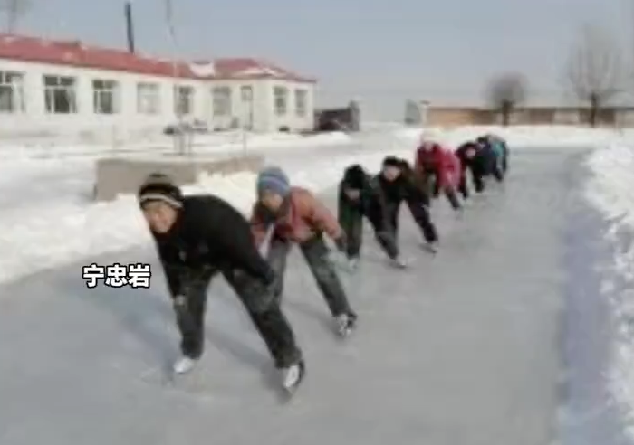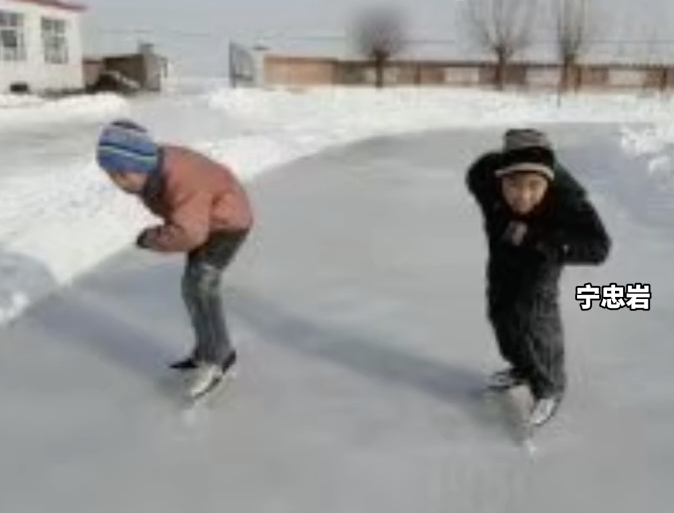 小学时期在学校浇水成冰的水泥操场上滑冰的宁忠岩
